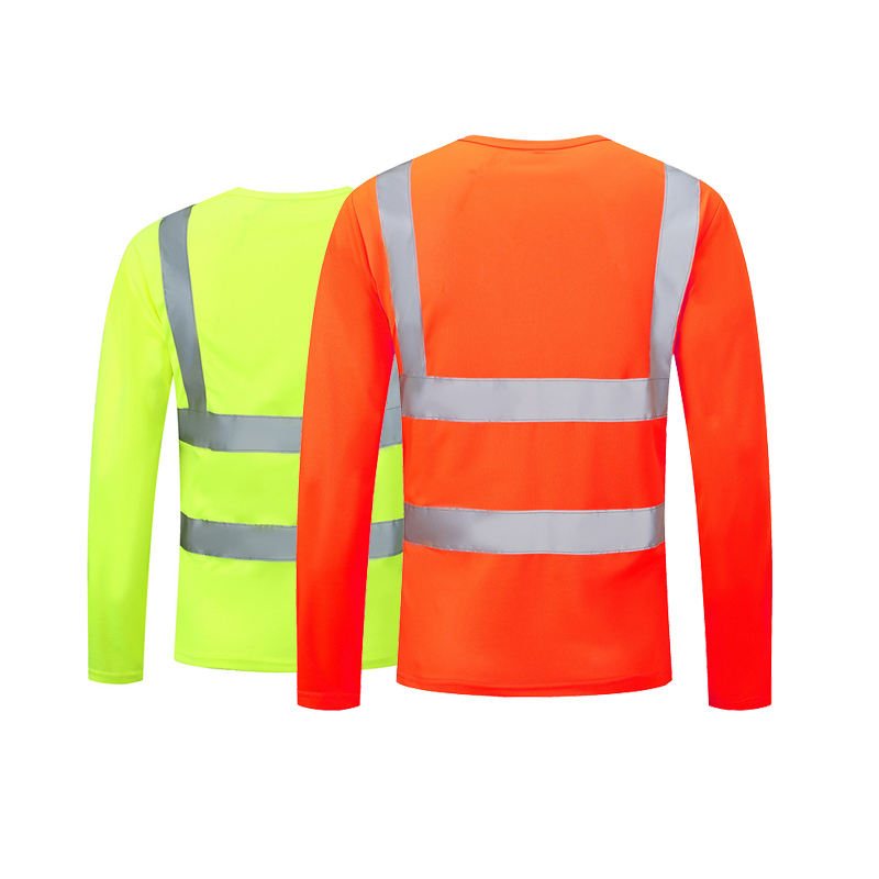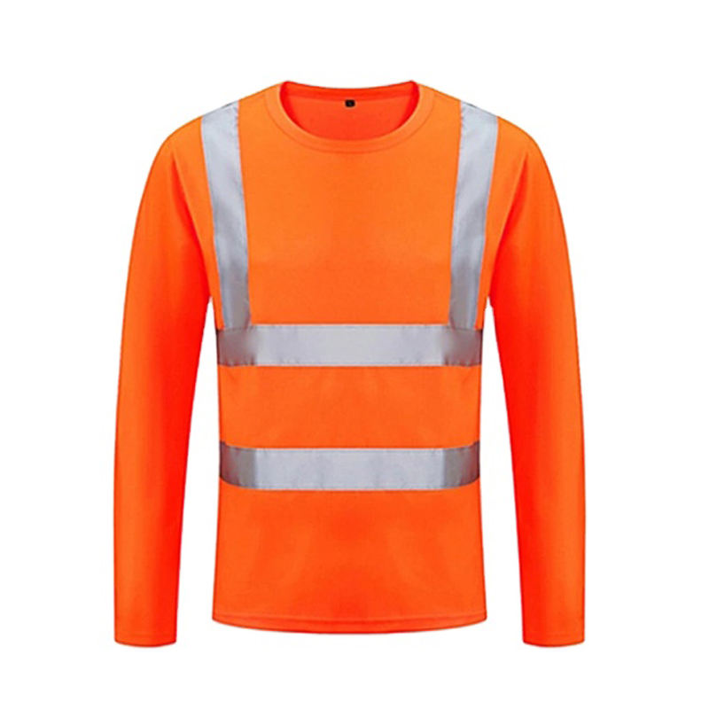 เสื้อยืดแขนยาวสะท้อนแสงสำหรับผู้ชายชุดทำงานตามสั่งเสื้อผ้าเพื่อความปลอดภัยทางถนน