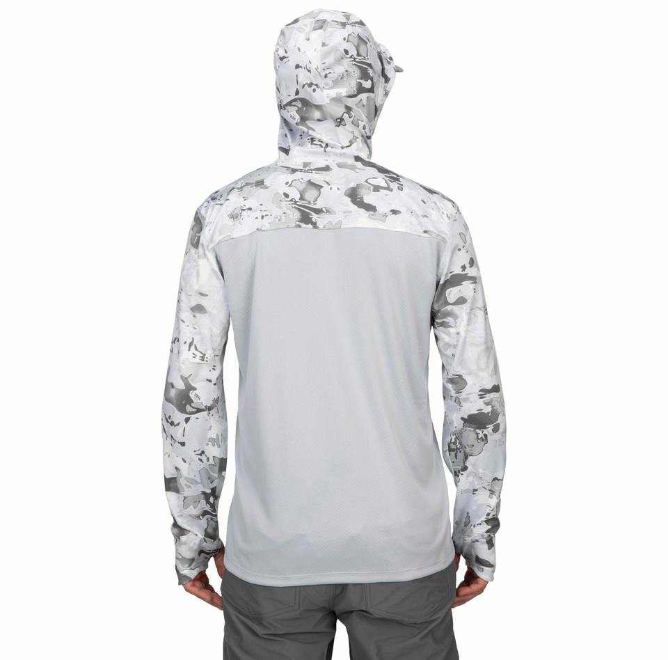 เสื้อตกปลาแขนยาวแบบมีฮู้ดสำหรับตกปลาเสื้อ UPF50ตกปลาผ้าดูดความชื้นป้องกันแสงแดดออกแบบโลโก้ของคุณได้ตามที่ต้องการ