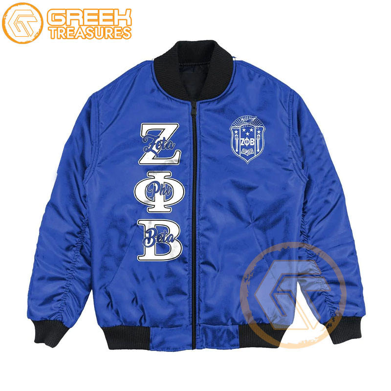 เสื้อแจ็กเก็ตทีมโรงเรียน Zeta phi Beta ผ้าซาตินปักลายมีตัวอักษรเด่นสำหรับฤดูใบไม้ร่วง