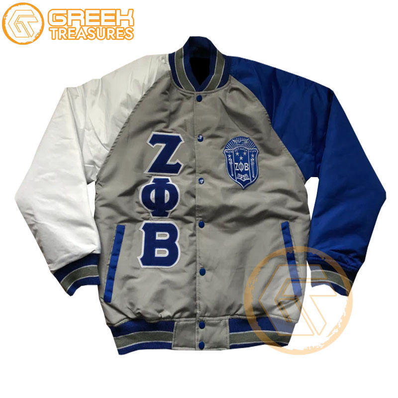 เสื้อแจ็กเก็ตทีมโรงเรียน Zeta phi Beta เสื้อแจ็กเก็ตสโมสรผ้าซาตินปักตราและมีตัวอักษรละเอียดกว่ากำหนดเอง