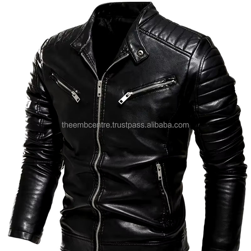 แจ็กเก็ตหนังแท้มีซิปสำหรับผู้ชายแจ็กเก็ตแฟชั่นหนังสีตามสั่ง