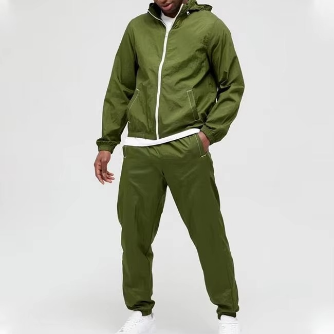 ชุดวอร์มไนลอนสำหรับผู้ชายชุดวอร์มกันลมมีซิปสีตัดกัน