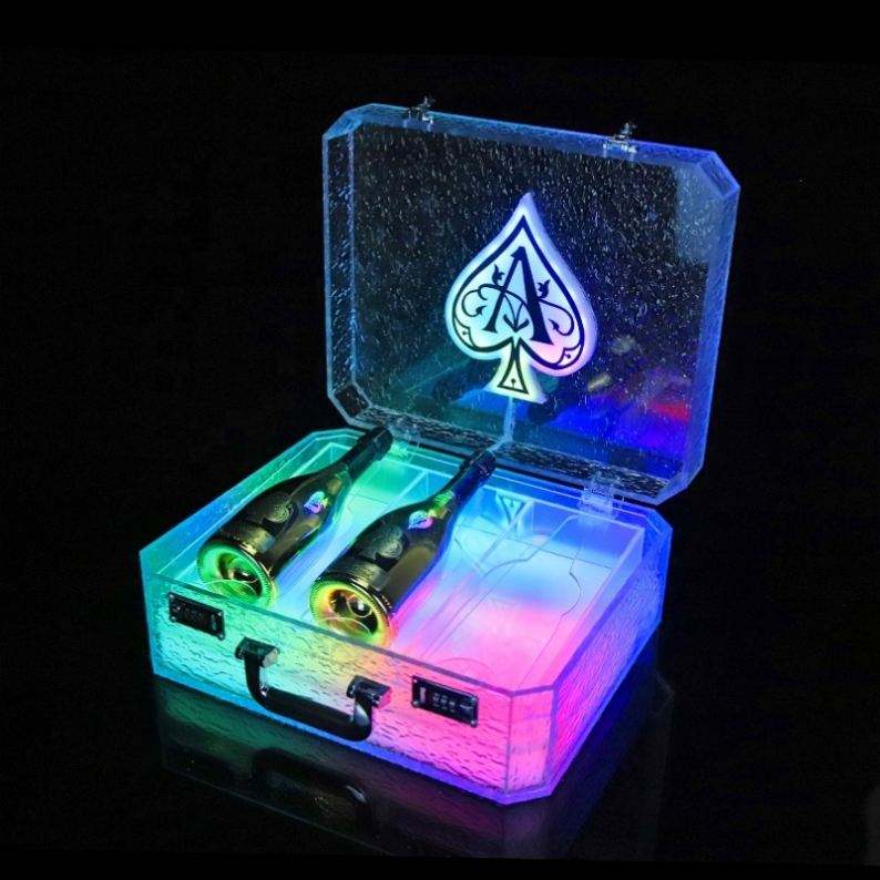 กล่องอะคริลิคใสแบบมีไฟ LED สำหรับบาร์ไนต์คลับ รุ่น Ace of Spade สำหรับใส่แก้ว VIP ขวดไวน์ หรือเครื่องดื่มอื่นๆ