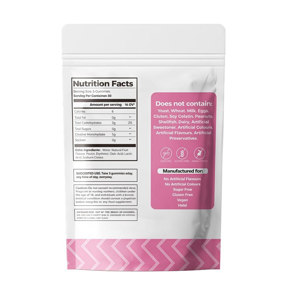 ครีเอทีนไฮโดรคลอไรด์ (HCL) โมโนไฮเดรต แบบกัมมี่สำหรับก่อนออกกำลังกาย ปราศจากน้ำตาล ช่วยเสริมสร้างกล้ามเนื้อ ได้รับการรับรองฮาลาล