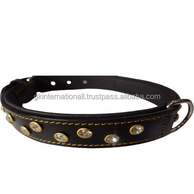 ปลอกคอสุนัขหนังสีดำกว้างพิเศษตกแต่งด้วยคริสตัลตามสั่งเหมาะสำหรับสุนัขขนาดใหญ่และขนาดกลางพร้อมข้อต่อสแตนเลส