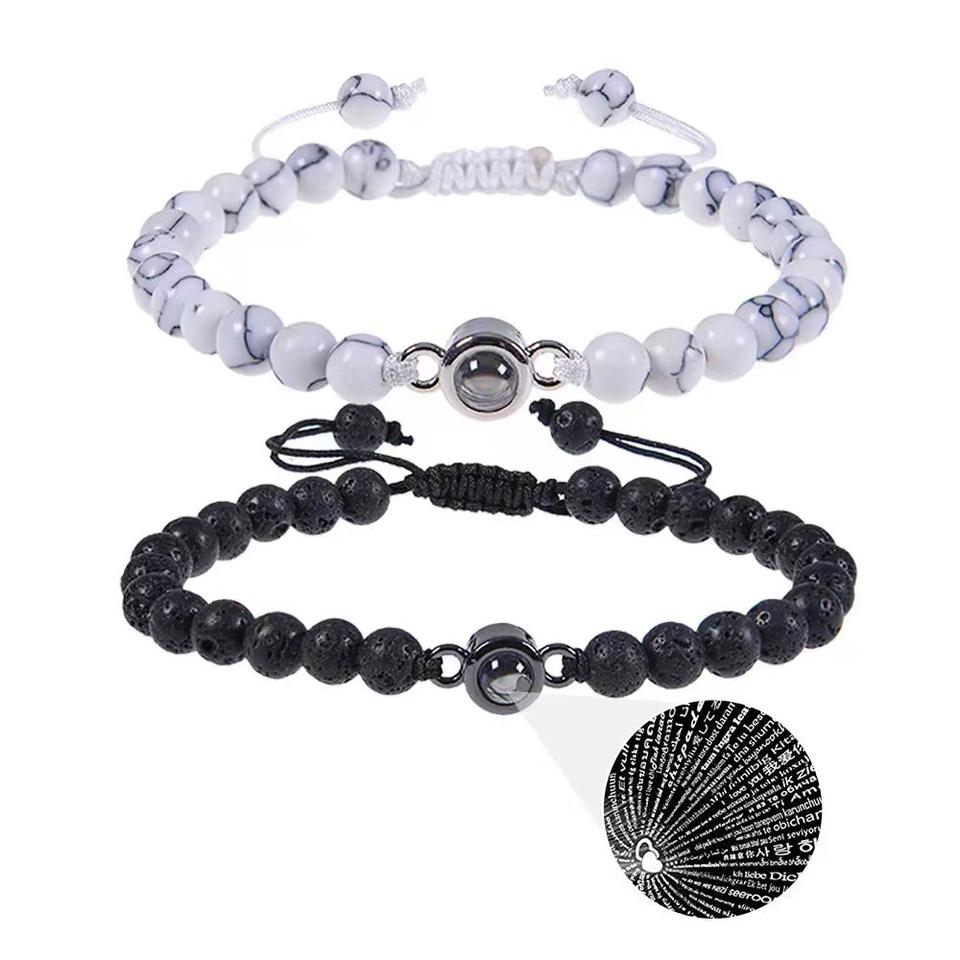 กำไลลูกปัดสีเทอร์ควอยส์สำหรับการฉายภาพหนึ่งร้อยภาษาของขวัญวันแม่สำหรับครอบครัวแฟชั่นสำหรับเด็กๆ