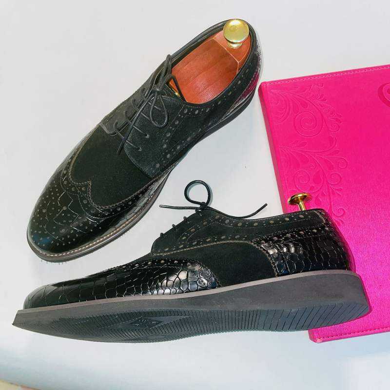 รองเท้าหนังวัวฟูลเกรนแบบสั่งทำพิเศษสำหรับผู้ชาย รองเท้าหนังสีดำ รองเท้าหนังดีไซน์สำหรับผู้ชายและรองเท้าอ็อกซ์ฟอร์ด