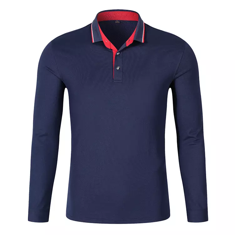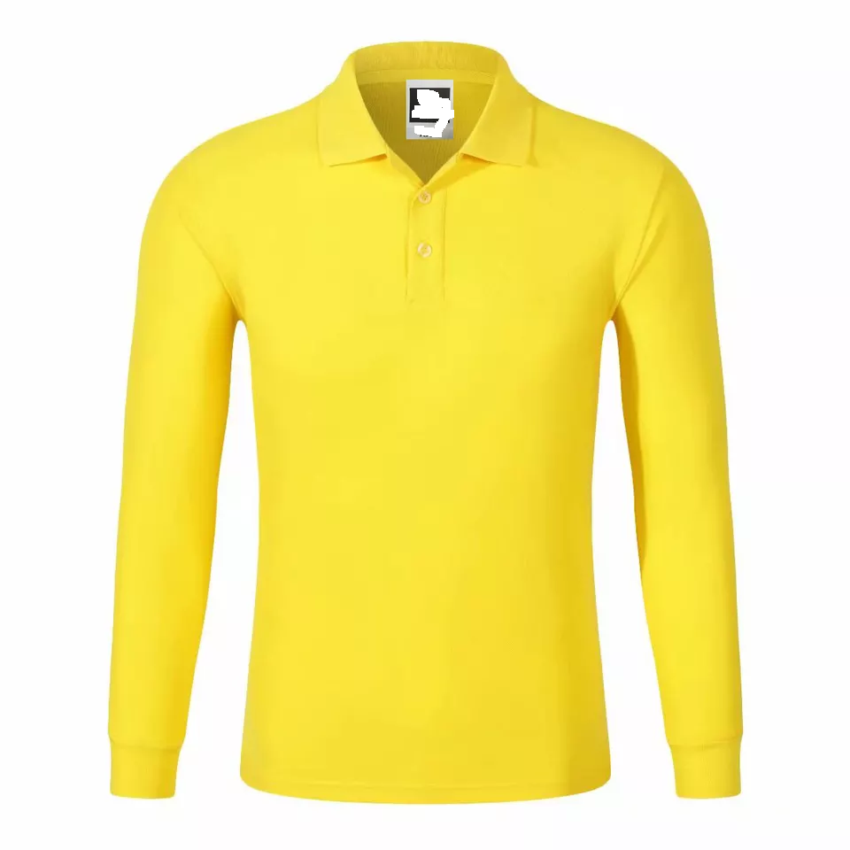 เสื้อโปโลแขนยาวผ้าฝ้ายปักลายโลโก้สีเหลืองรอยยับออกแบบได้ตามต้องการ