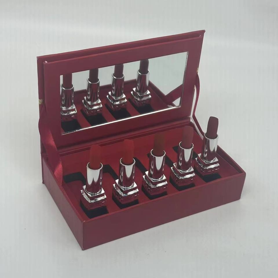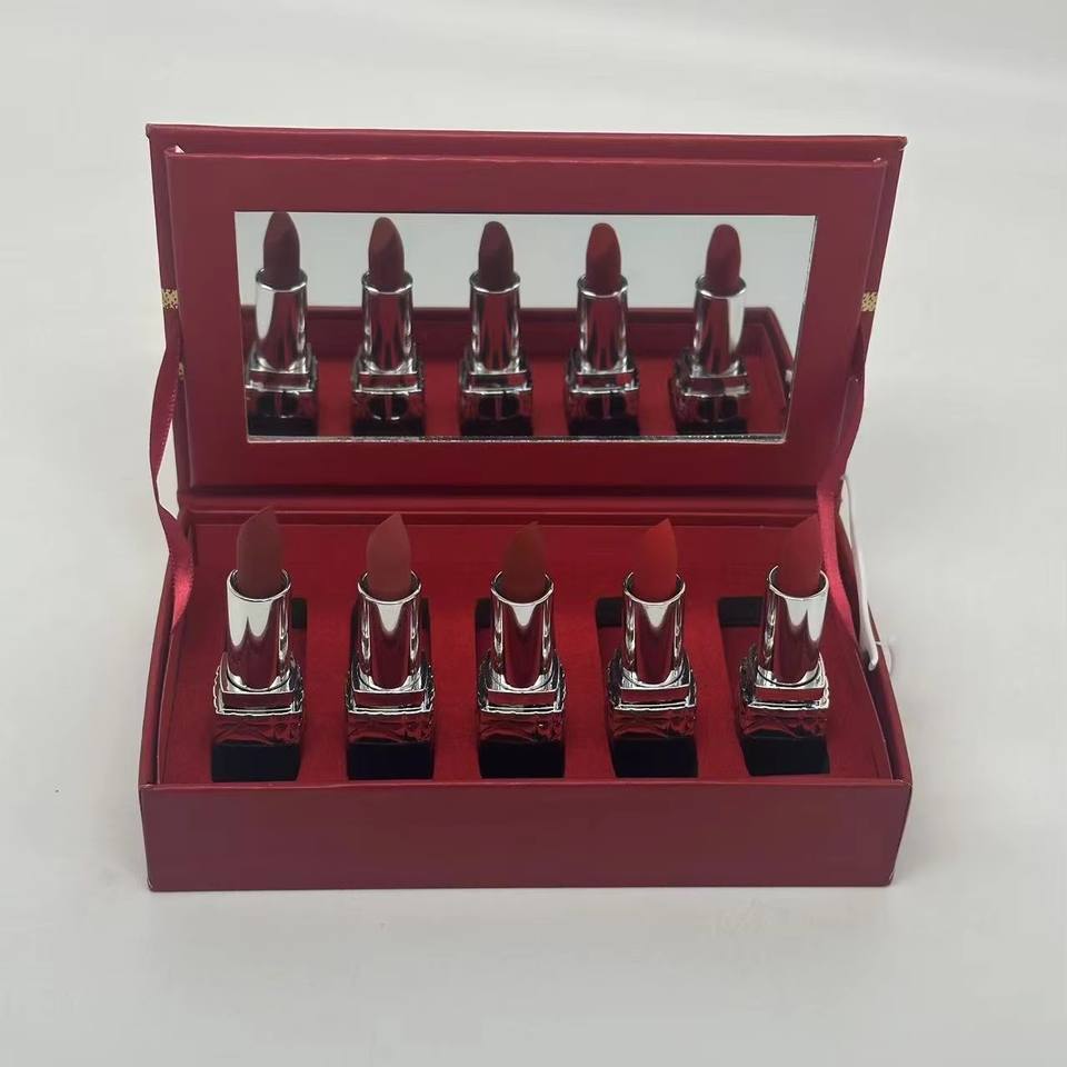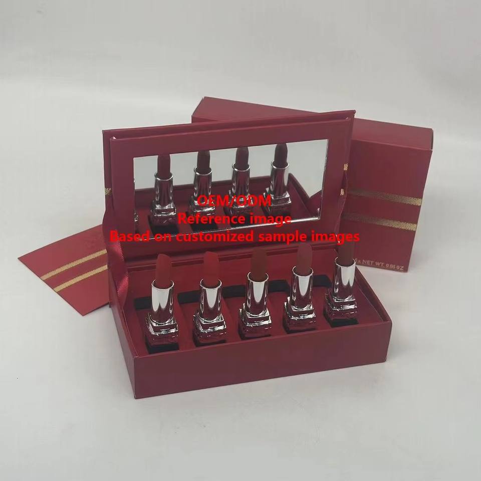 โรงงานผลิตกล่องลิปสติกแบบกำหนดเอง - ชุดเครื่องสำอางระดับไฮเอนด์ 5 ชิ้น ลิปสติกสีแดง