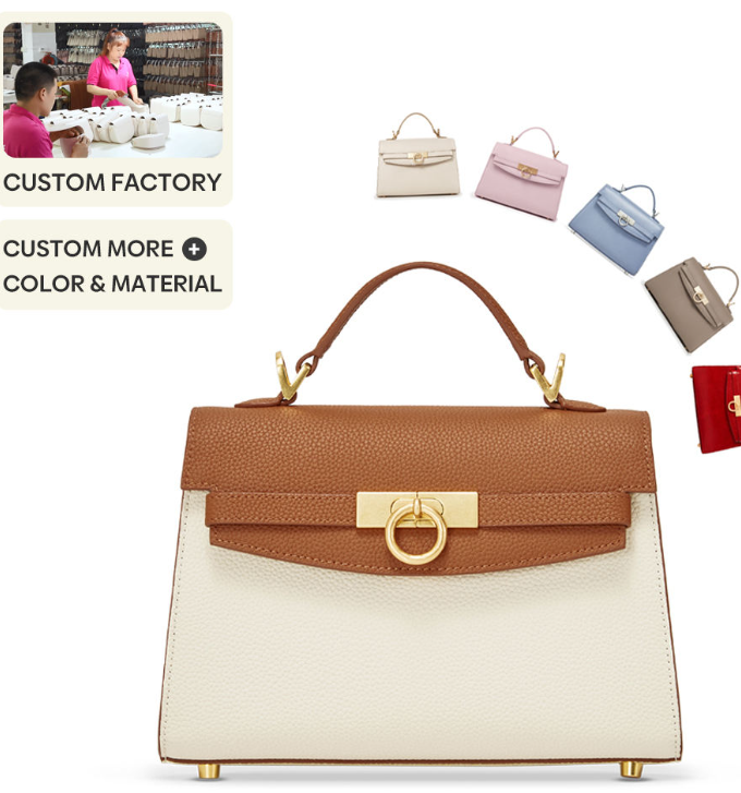 กระเป๋าถือผู้หญิงแฟชั่นใหม่ สีตัดกัน ดีไซน์ทันสมัย ผลิตจากหนัง PU แบบพลิก ขายส่ง รับผลิตตามแบบ