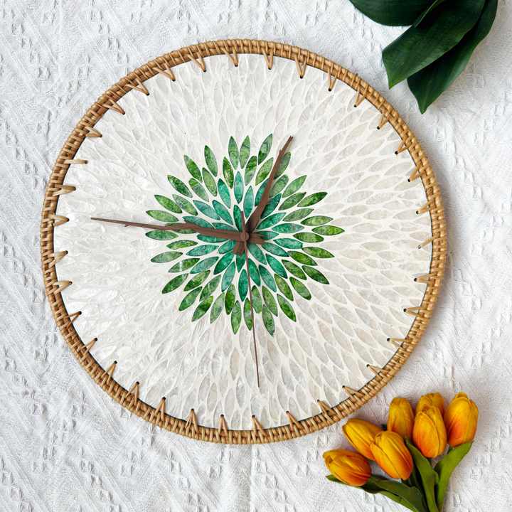 นาฬิกาแขวนผนังหวายธรรมชาติแบบอนาล็อก พร้อมป้ายสั่งทำพิเศษ ราคาแข่งขันได้