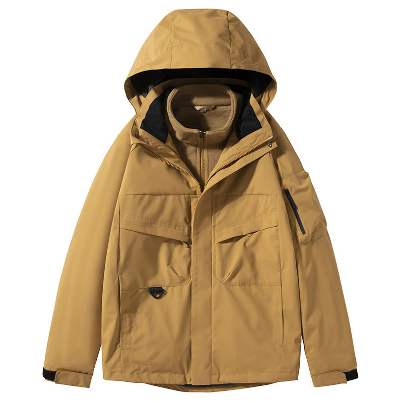 เสื้อแจ็กเก็ตผู้ชายสามในหนึ่งถอดออกได้เสื้อปีนเขากันลมและกันน้ำแฟชั่นสำหรับฤดูใบไม้ร่วงโลโก้ตามสั่ง