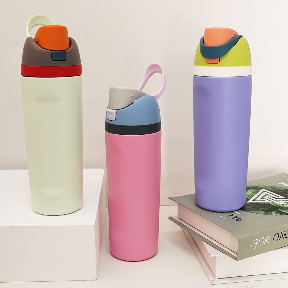 แก้วเก็บความร้อนสแตนเลสสตีลแบบกำหนดโลโก้ได้ ปราศจากสาร BPA พร้อมฝาปิดและหลอดดูด ขวดน้ำกีฬาแบบสองชั้น