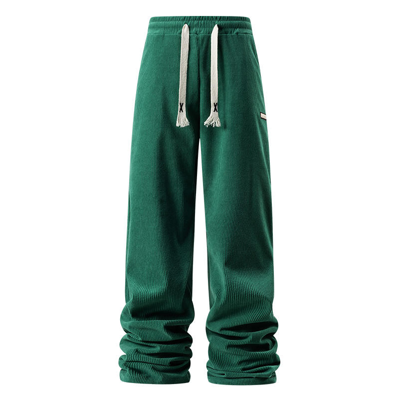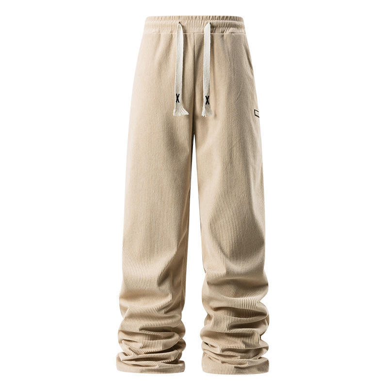 กางเกงผ้าลูกฟูกขาตรงสำหรับผู้ชายกางเกงขาบานทรงหลวมใส่ลำลองสำหรับฤดูใบไม้ผลิและฤดูใบไม้ร่วงโลโก้ตามสั่ง
