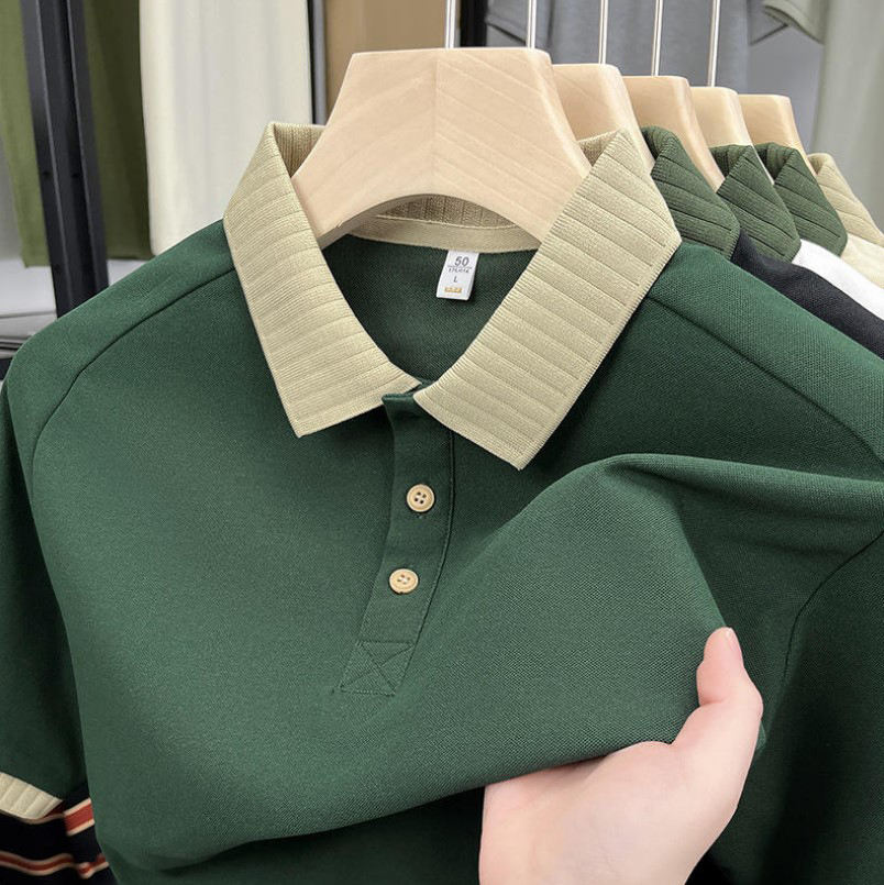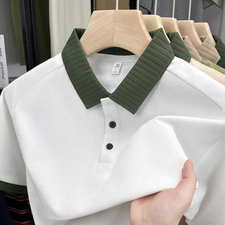 เสื้อโปโลผ้าไอซ์ซิลค์แขนสั้นสำหรับผู้ชาย, เสื้อยืดแฟชั่นลำลองเรียบง่ายฤดูร้อนออกแบบโลโก้ได้ตามต้องการ