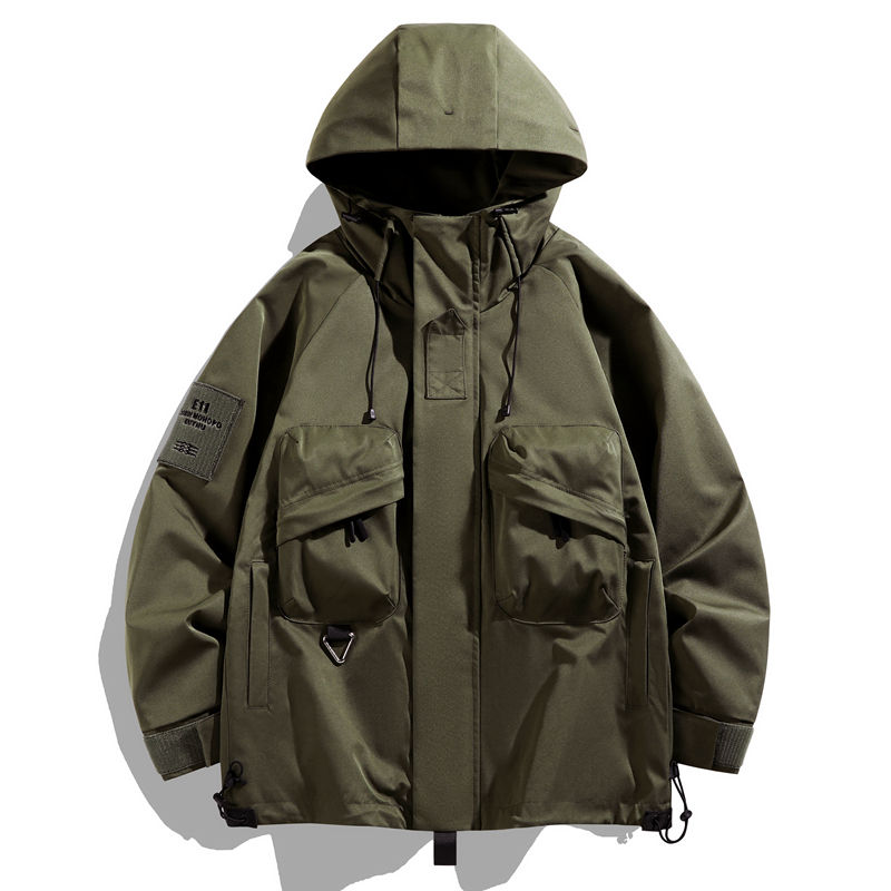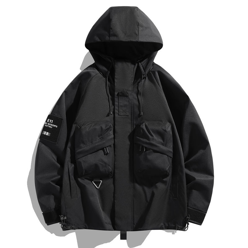 เสื้อแจ็คเก็ตกันลมมีฮู้ดสำหรับผู้ชายเสื้อแจ็คเก็ตกันลมมีฮู้ดเสื้อแจ็คเก็ตกันลมมีแบรนด์แฟชั่นสไตล์ญี่ปุ่นโจ๊กเกอร์สวมใส่ปรับแต่งโลโก้