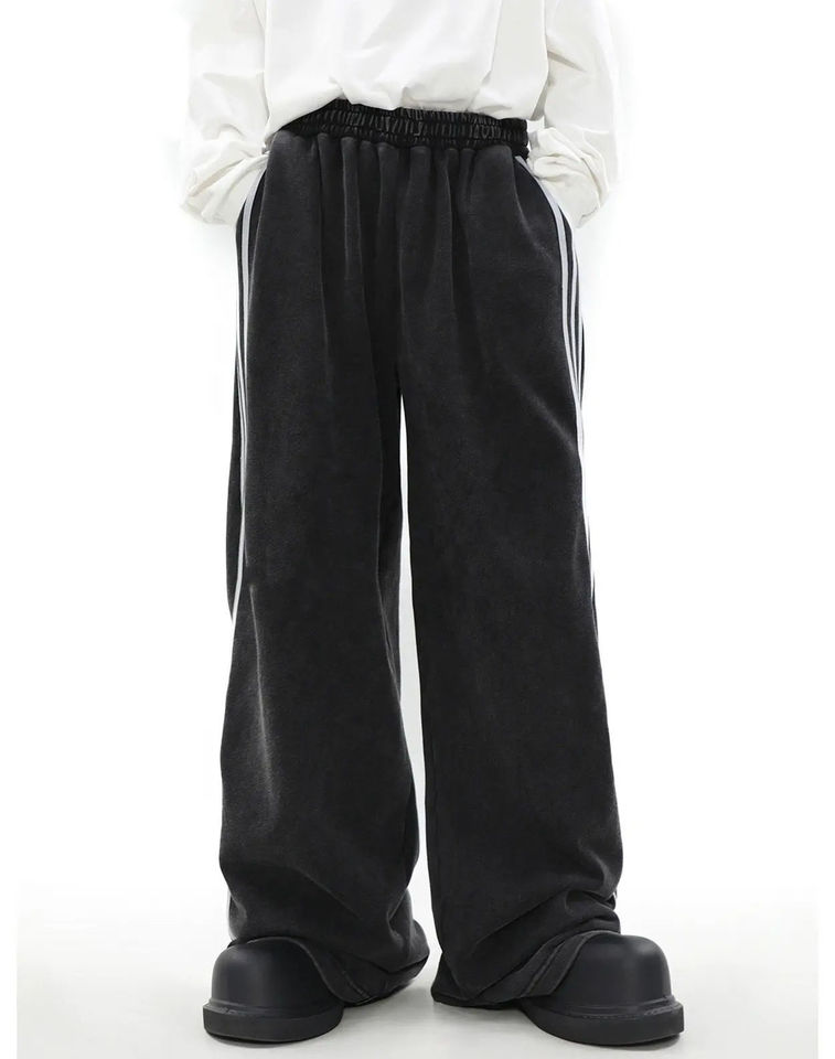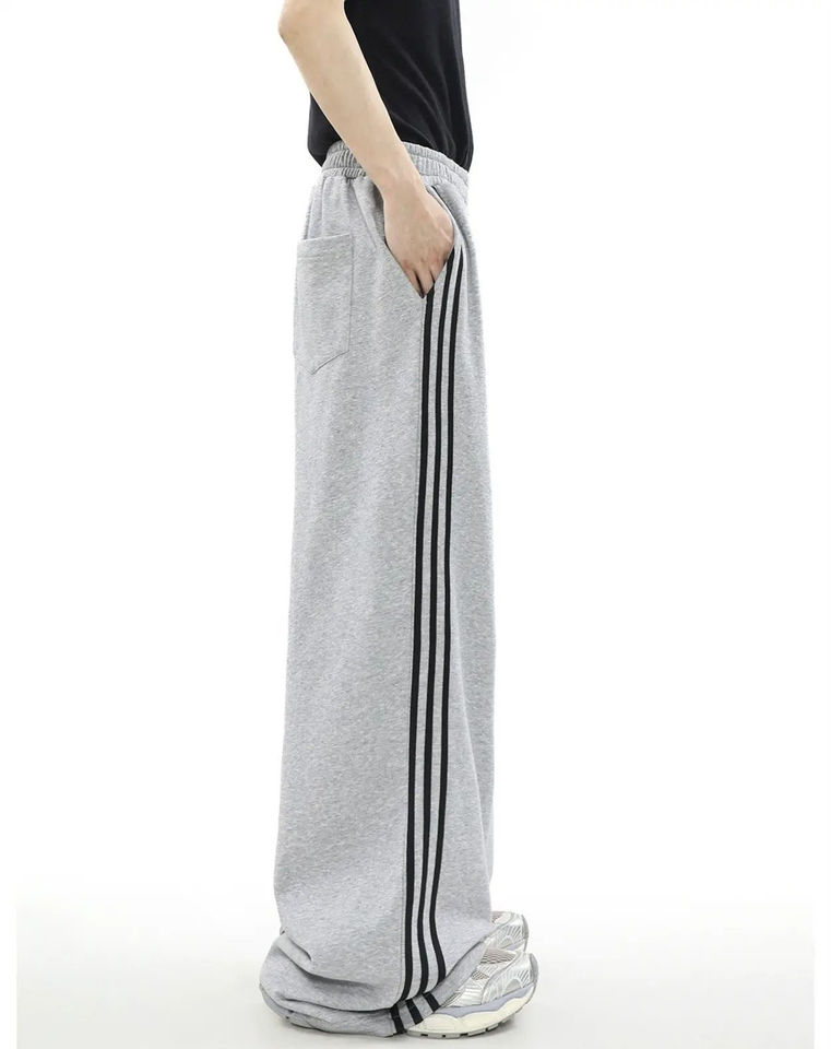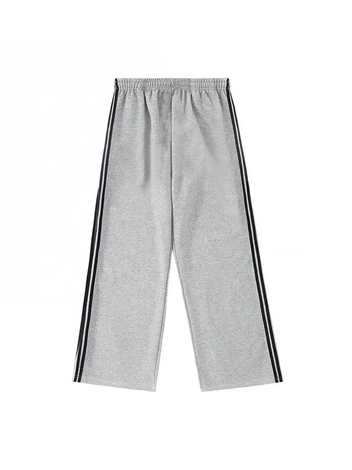 กางเกงขายาวทรงหลวมลายทางด้านข้างของผู้ชายกางเกงลำลองสีดำขาบานทรงหลวมโอเวอร์ไซส์ออกแบบโลโก้ได้ตามต้องการ