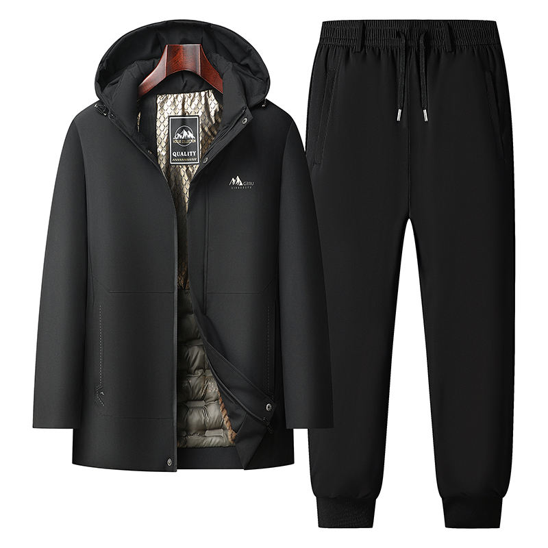 สูทขนห่านมีฮู้ดของผู้ชายมีหลายสีเลือกได้ถอดออกได้เพื่อให้ความอบอุ่นในฤดูใบไม้ร่วงและฤดูหนาวโลโก้ตามสั่ง