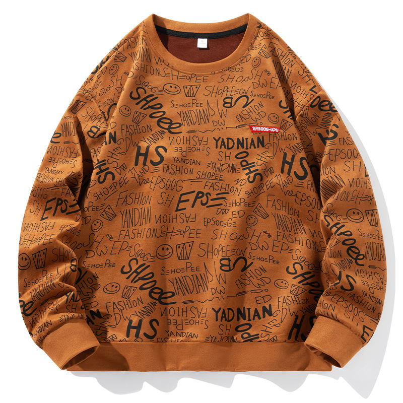 เสื้อสเวตเตอร์คอกลมสำหรับผู้ชายสไตล์อเมริกันย้อมสีมัดย้อมเสื้อสองชิ้นใส่สบายทันสมัย2025โลโก้แบบกำหนดเอง
