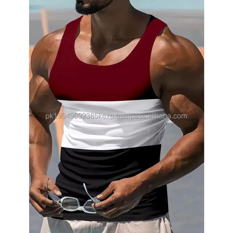 เสื้อกล้ามผู้ชายผ้าโพลีเอสเตอร์ผสมคอตตอนคุณภาพสูง ระบายอากาศดี แฟชั่นฤดูร้อน สกรีนโลโก้ได้