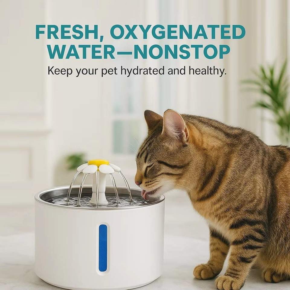 น้ำพุสแตนเลสอัตโนมัติขนาด 2.4 ลิตร สำหรับสัตว์เลี้ยง พร้อมระบบกรองสามชั้น สำหรับสุนัขทุกช่วงวัย รับทำโลโก้ตามสั่ง
