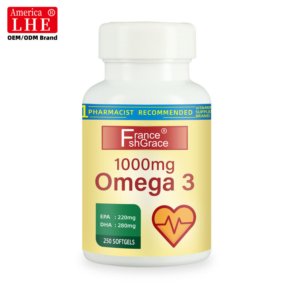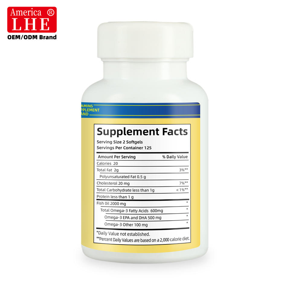 ซอฟต์เจลน้ำมันปลาฉลากโลโก้แบบกำหนดเอง บำรุงสุขภาพหัวใจ โอเมก้า 3 น้ำมันปลา EPA DHA อาหารเสริมซอฟต์เจล