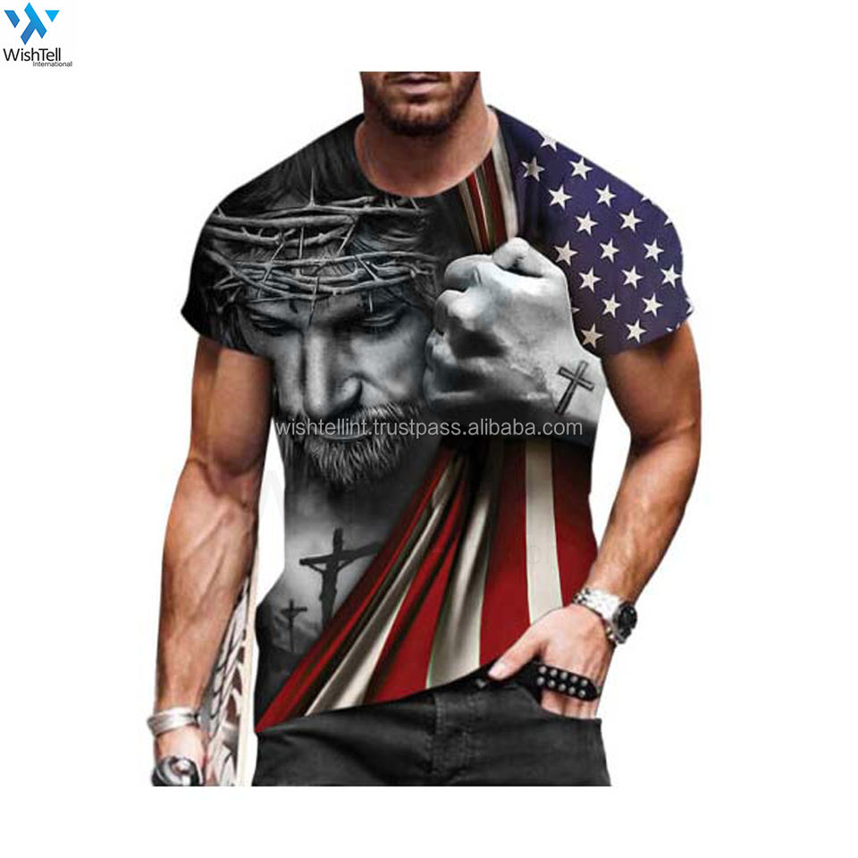 Customized Men's Short Sleeve Anime T-Shirt Screen Printing with Rhinestone on Cotton