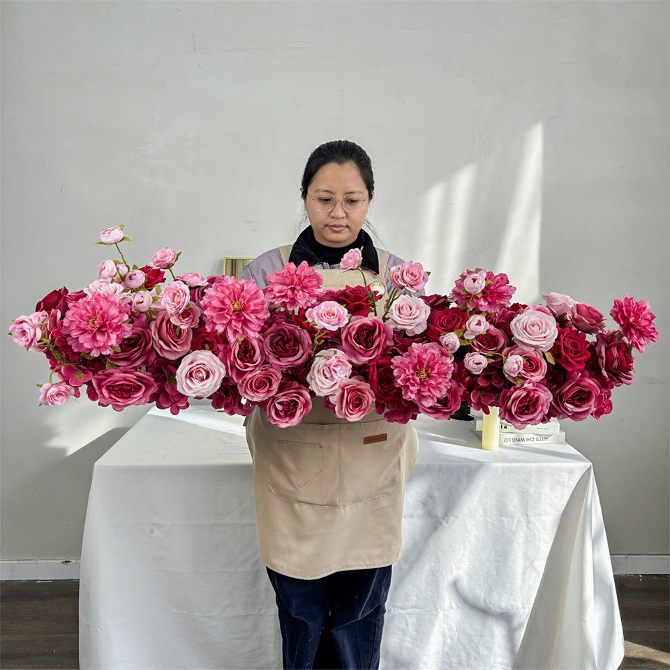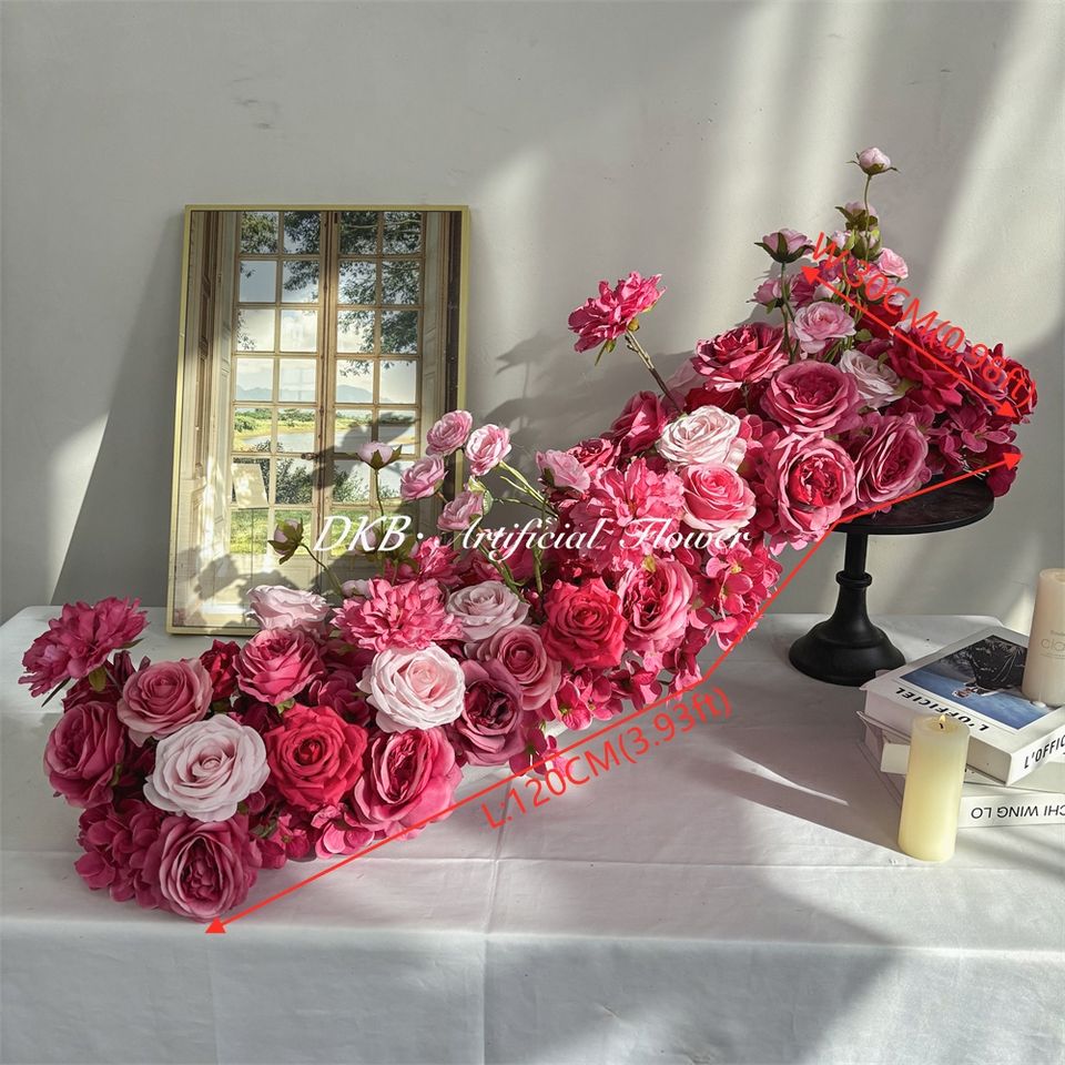 Customized Size Realistic Artificial Silk Flowers Runner 200cm X 60cm for Banquet Activities & Mother's Day Decorations