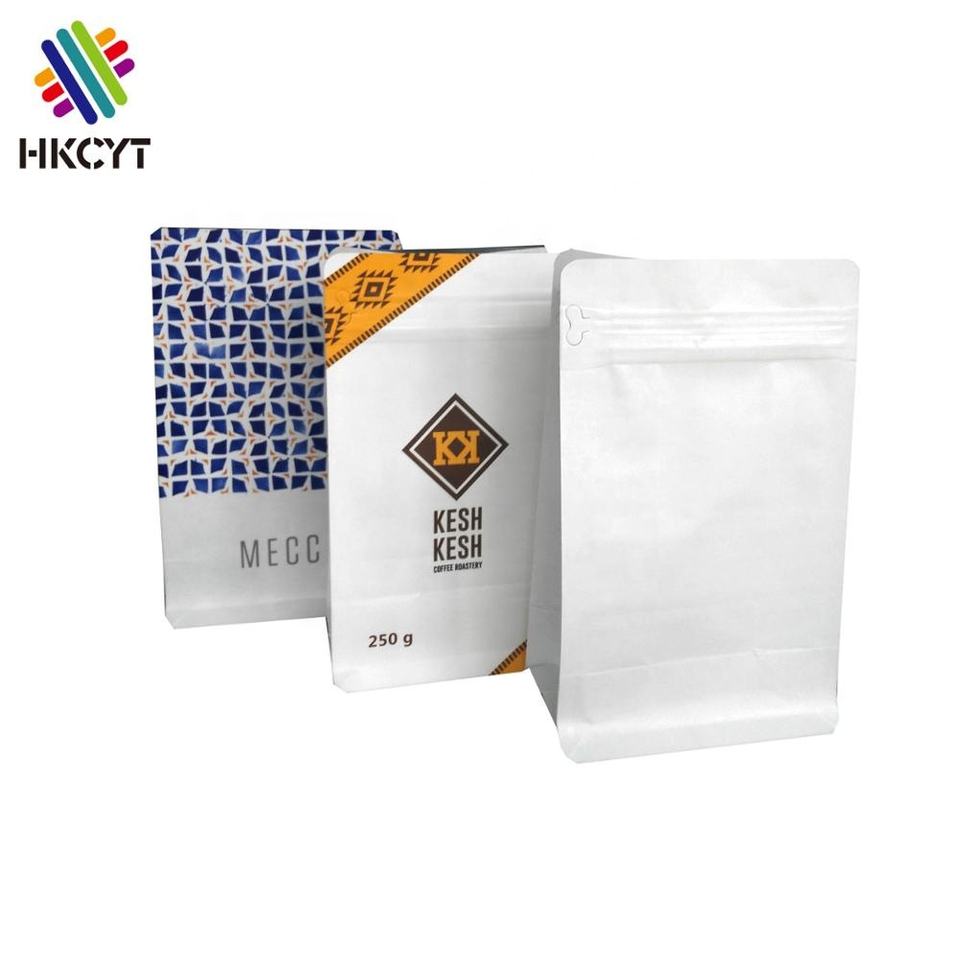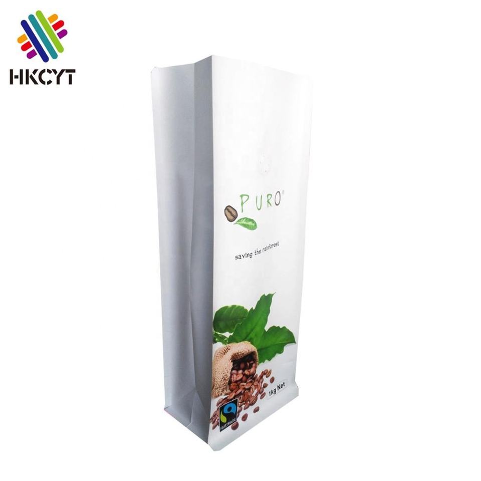 Customize design natural kraft paper 250 g 500 g 1 kg block bottom coffee bag with zipper and air valve