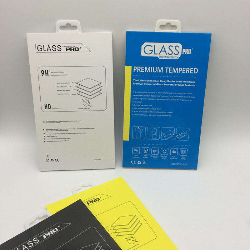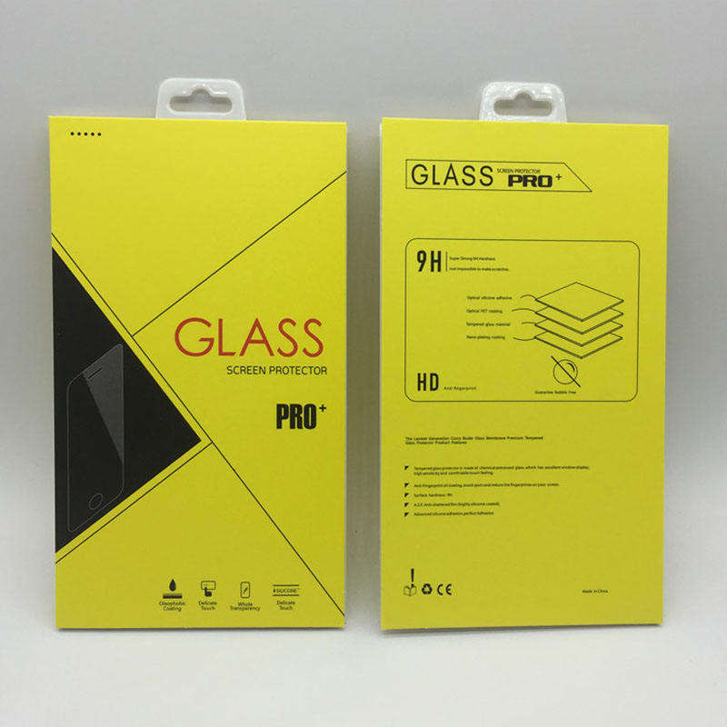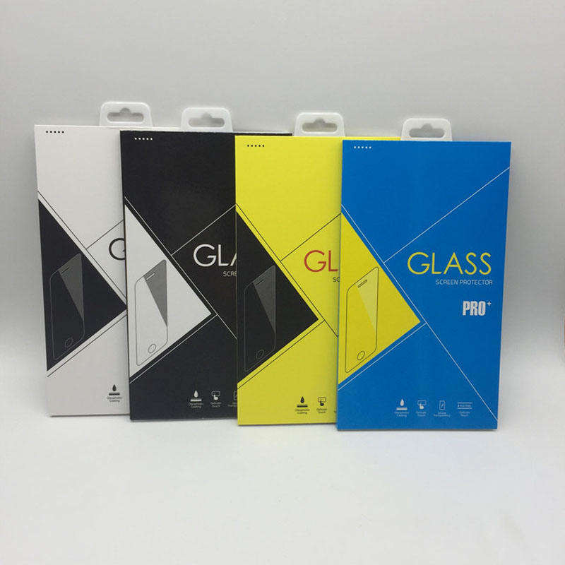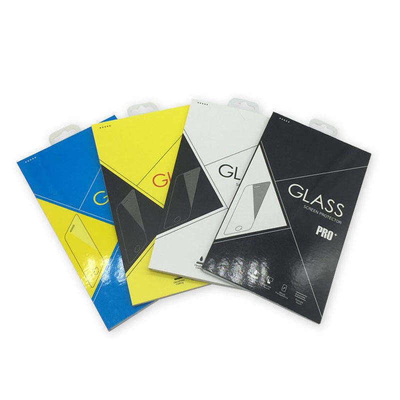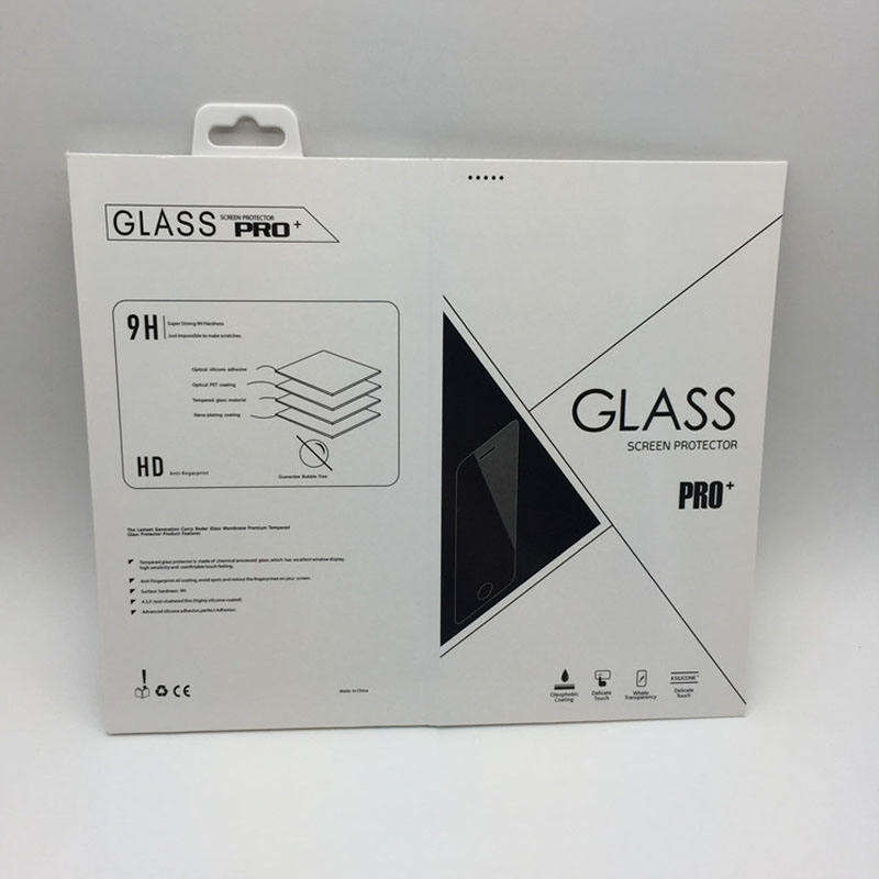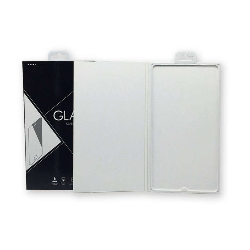 กล่องบรรจุภัณฑ์กระจกนิรภัยแบบกำหนดเองสำหรับฟิล์มกันรอยหน้าจอโทรศัพท์มือถือ พร้อมตะขอสำหรับบรรจุภัณฑ์อิเล็กทรอนิกส์