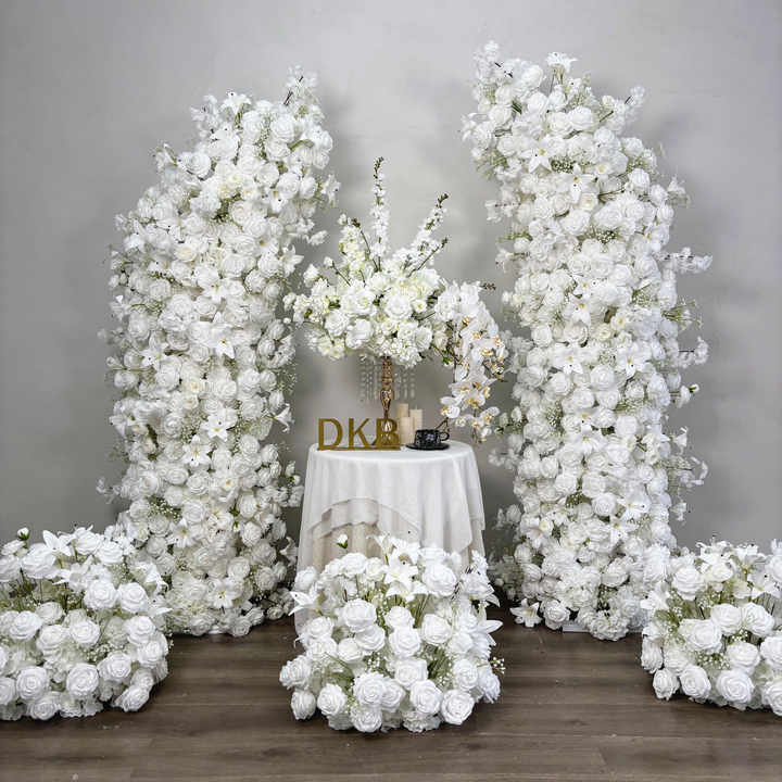 ดอกไม้โค้งสีขาวตกแต่งซุ้มดอกไม้สำหรับงานแต่งงาน