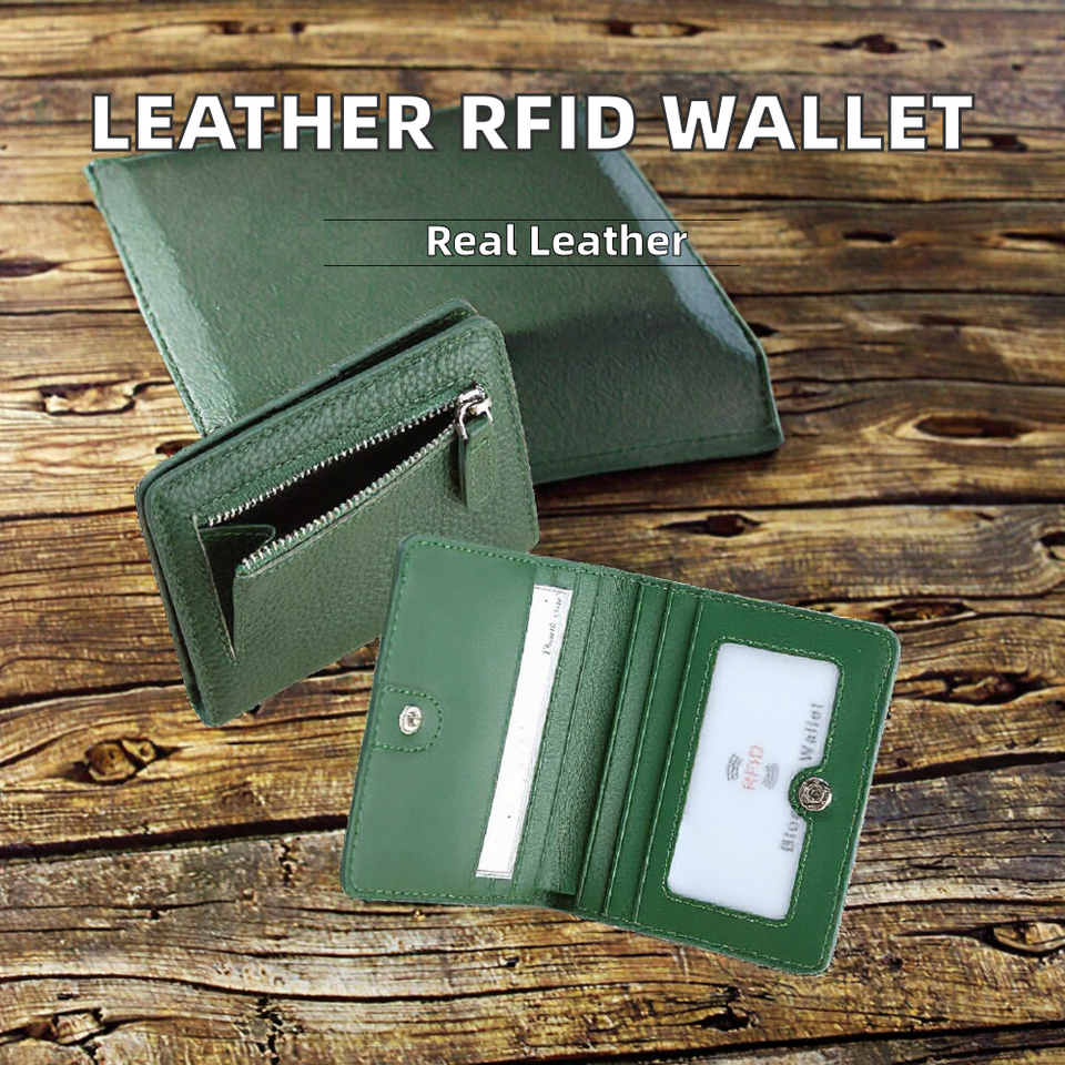 กระเป๋าสตางค์หนังแท้ผู้ชายลายโลโก้แบบวินเทจกันน้ำขนาดเล็ก ป้องกันการโจรกรรม RFID ใส่บัตรและเหรียญได้