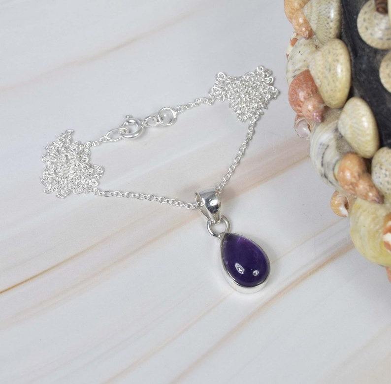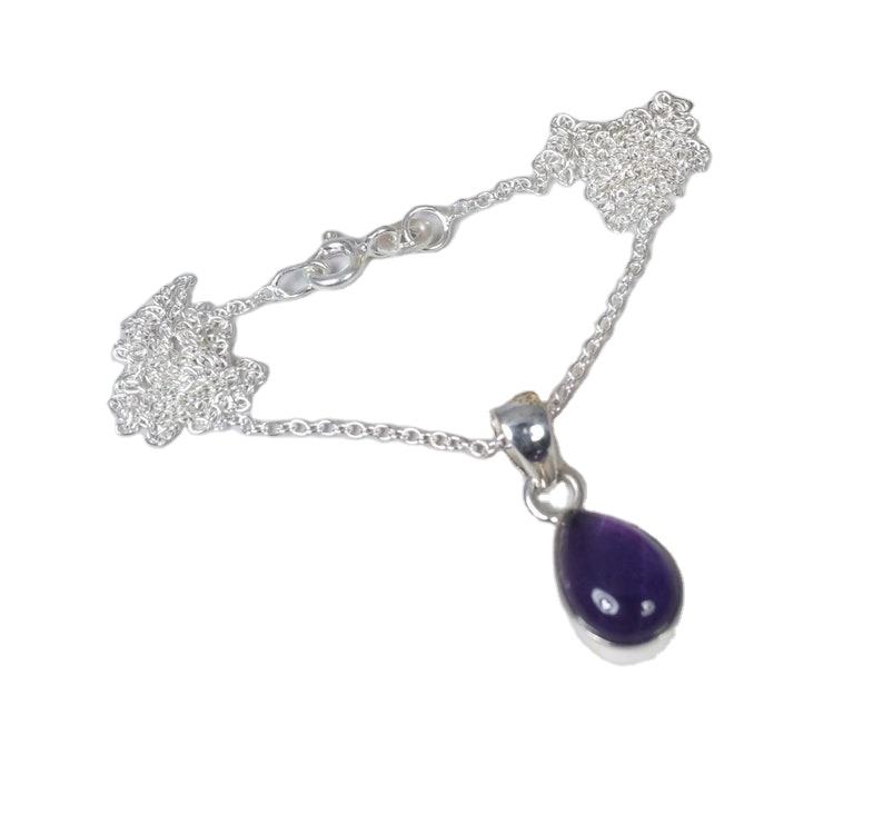 ตัดอเมทิสต์สีม่วง 925 เงินสเตอร์ลิงอัญมณีจี้ W/หรือ W/o เครื่องประดับทําด้วยมือหินธรรมชาติของขวัญวันเกิด