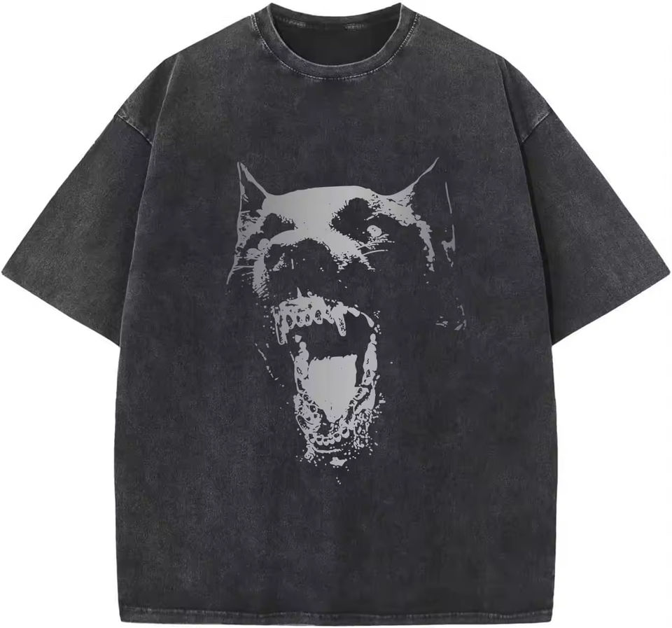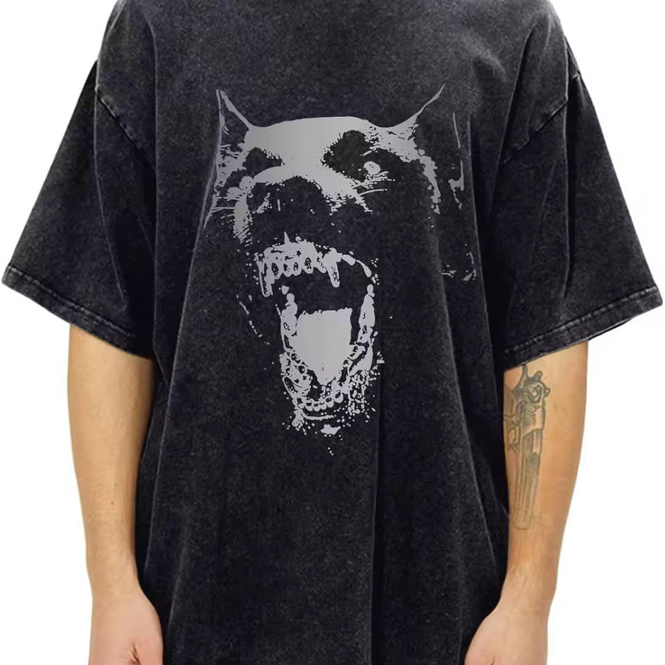 เสื้อยืดคัตแอนด์ซอว์พิมพ์ลายกราฟิกวินเทจแบบ DTG ผ้าฝ้าย 100% ทรงดรอปไหล่ ล้างสีแบบแอซิดวอช พิมพ์ลาย DTG เสื้อยืดผู้ชาย