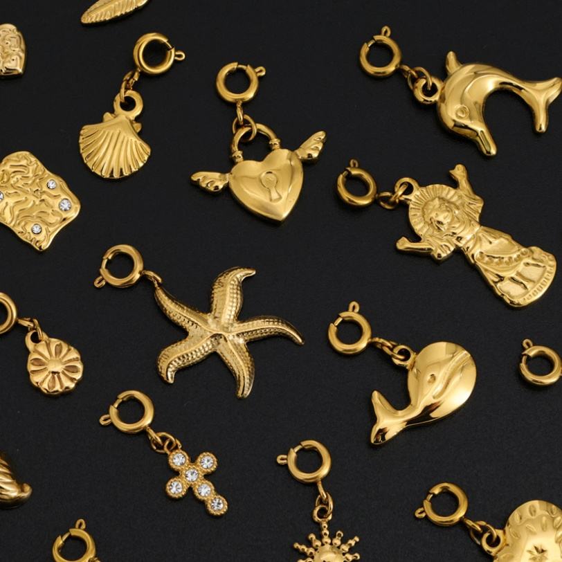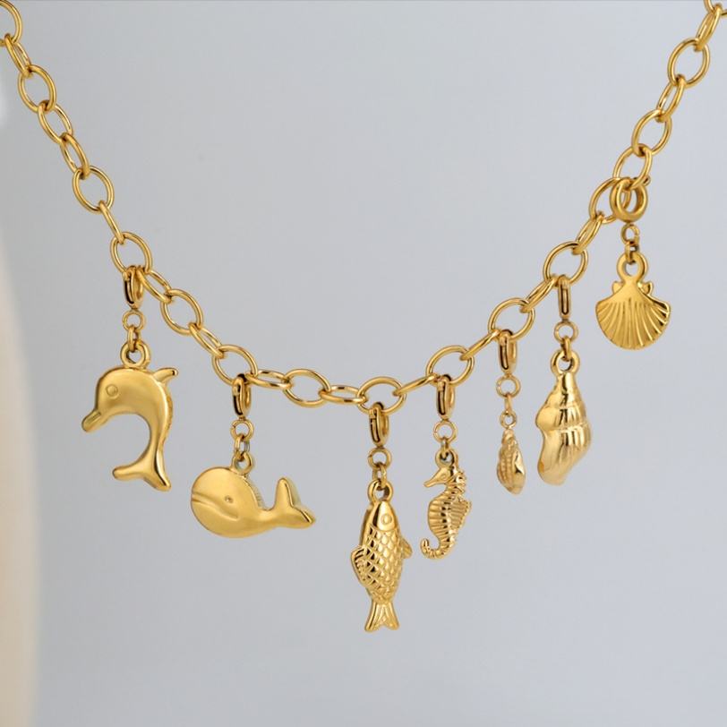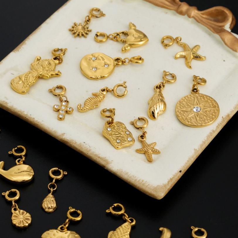 สร้อยข้อมือสแตนเลสสตีล 316L 18K น่ารัก หรูหรา ปรับแต่งได้ พร้อมจี้รูปทะเล สำหรับทำเครื่องประดับ ขายส่ง