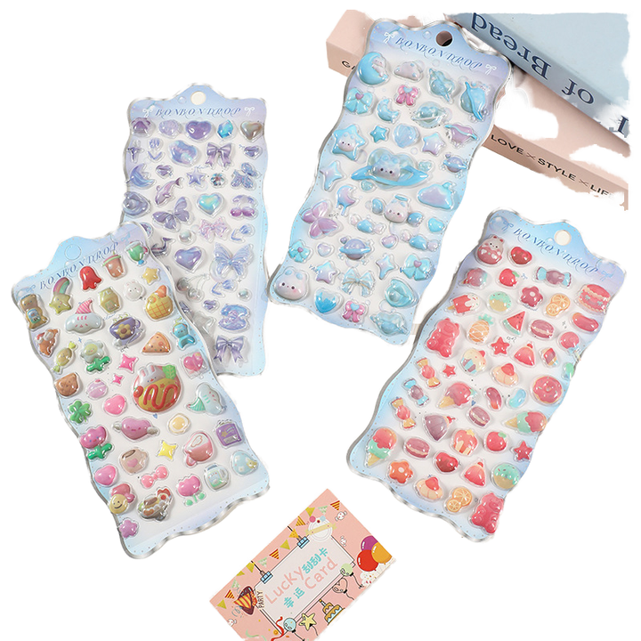 สติกเกอร์รูปสัตว์เรซินลายการ์ตูน3D น่ารักแผ่นสติกเกอร์ติดแน่นลายกระต่ายสีรุ้งสำหรับเด็ก