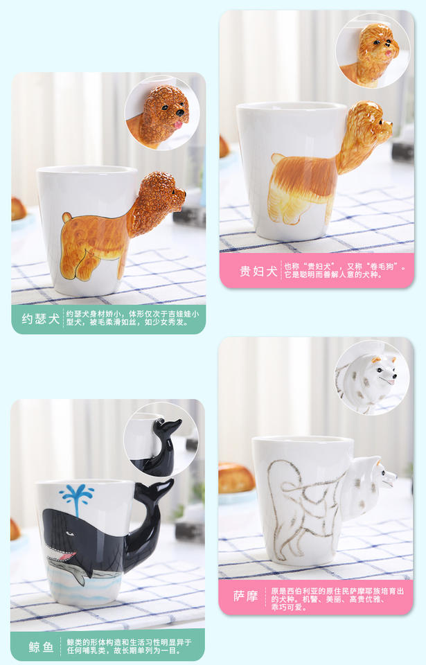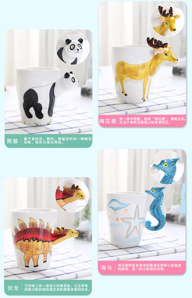 แก้วกาแฟลาย3D น่ารักแก้วเซรามิกรูปสัตว์ของขวัญพิมพ์โลโก้ได้ตามต้องการ