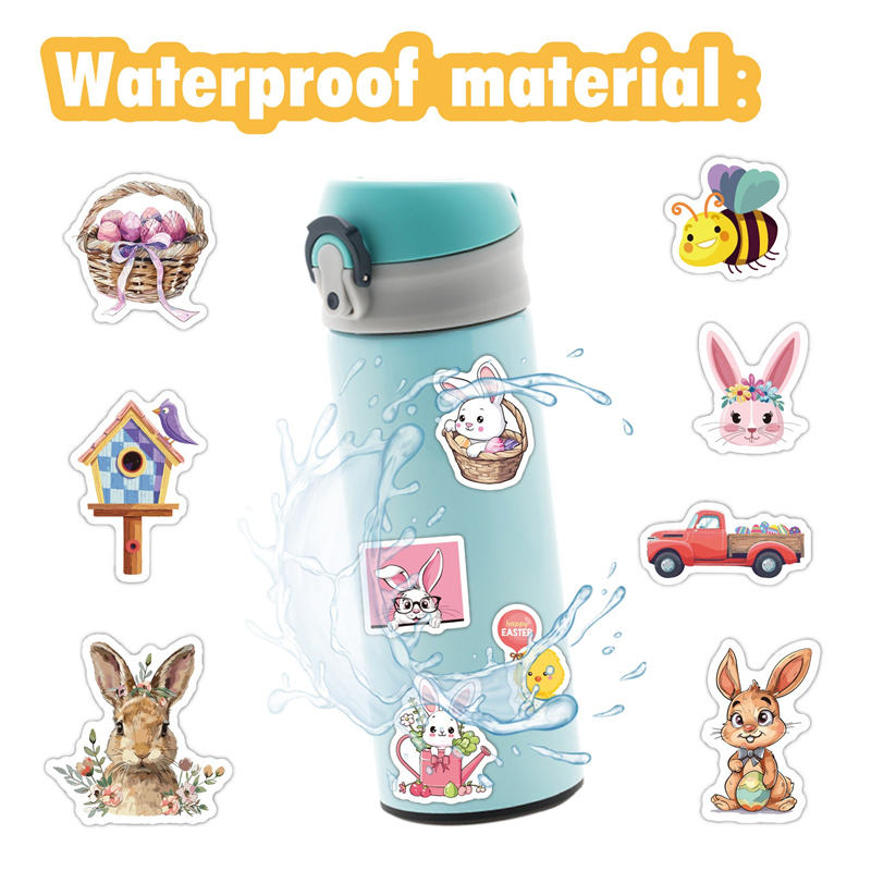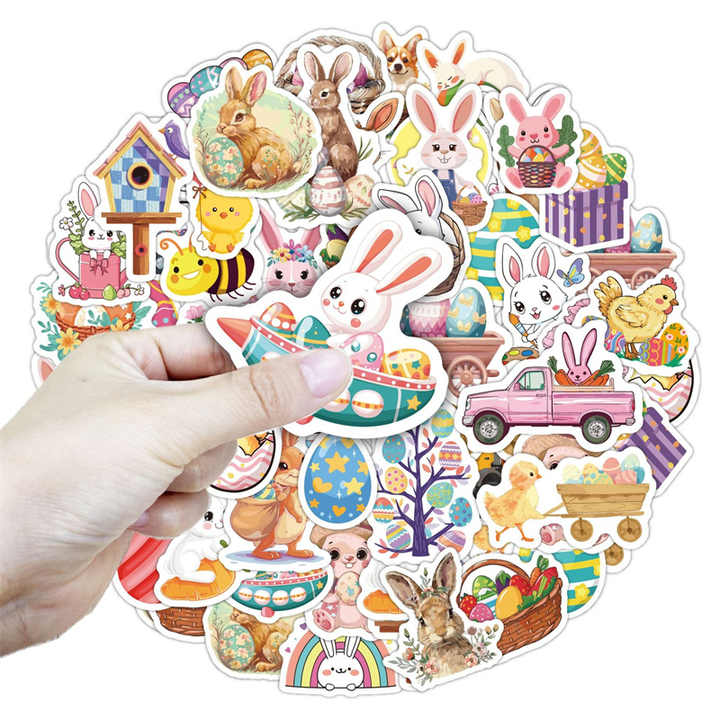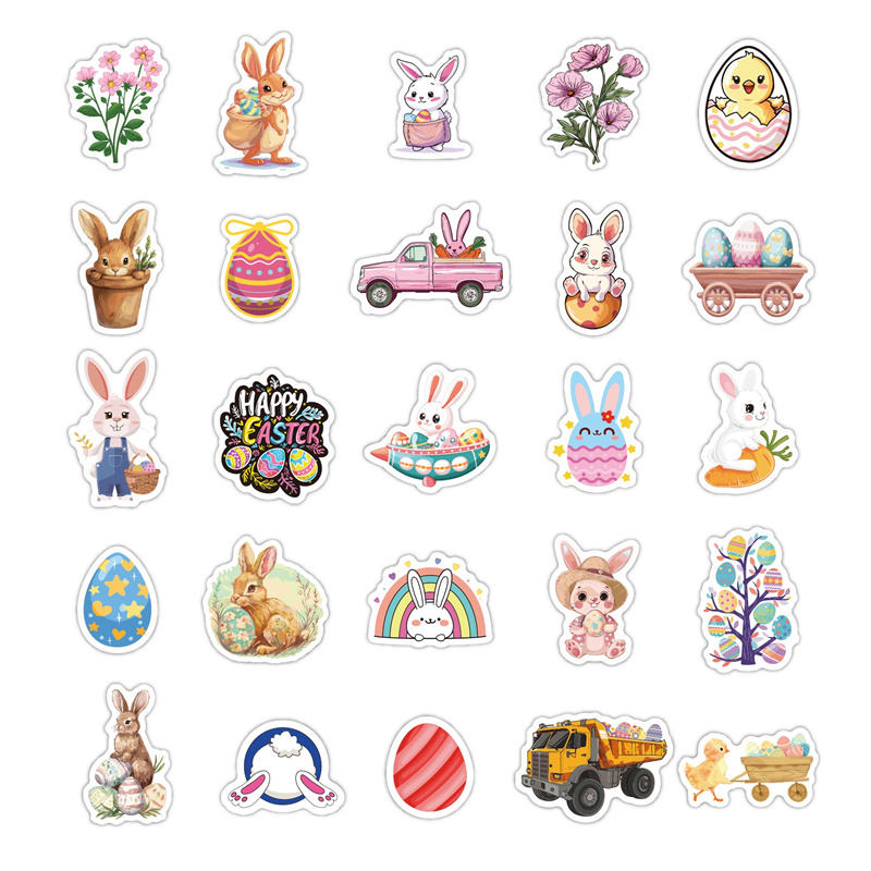 ไข่อีสเตอร์50ชิ้นน่ารักตกแต่งงานปาร์ตี้ DIY กันน้ำและโฮโลแกรมสำหรับเด็กสติกเกอร์เทศกาลบนกระเป๋าเทียน
