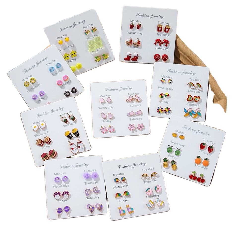ต่างหูลายผลไม้/โดนัท/ห่วงรูปดอกไม้7คู่ชุดเครื่องประดับขนาดเล็กสำหรับผู้หญิงแพ็กเกจหนึ่งสัปดาห์