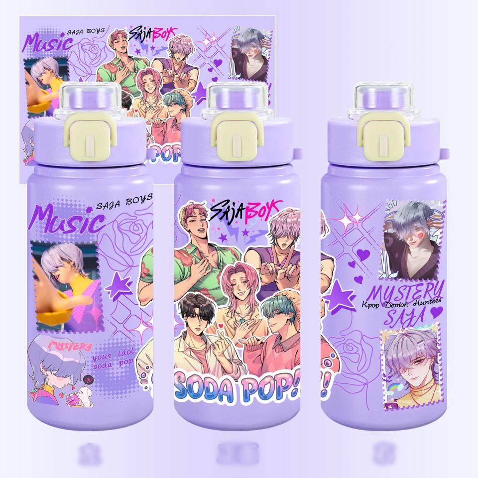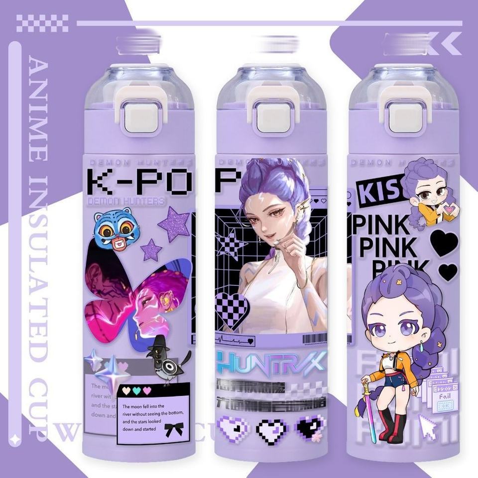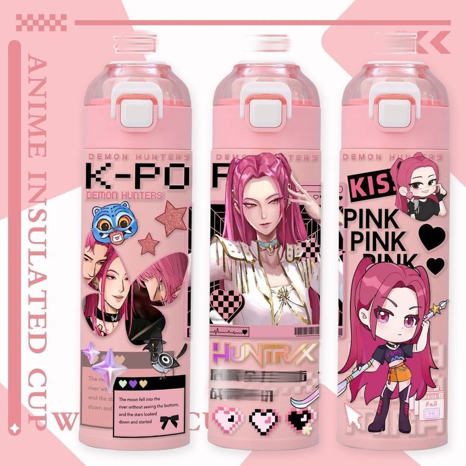 ขวดน้ำลายการ์ตูนน่ารักสไตล์ฮันตริกซ์ เกิร์ล เคป๊อป นักล่าปีศาจ ขนาดใหญ่ ทำจากสแตนเลส เก็บอุณหภูมิได้ สำหรับเด็ก