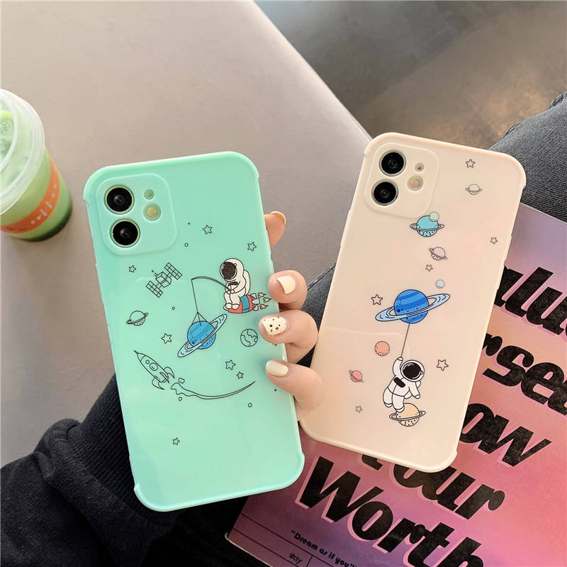 เคสซิลิโคนนิ่มลายนักบินอวกาศ,เคสกันกระแทกสำหรับ iPhone 11 Pro 12 Mini X XR XS Max SE 2020