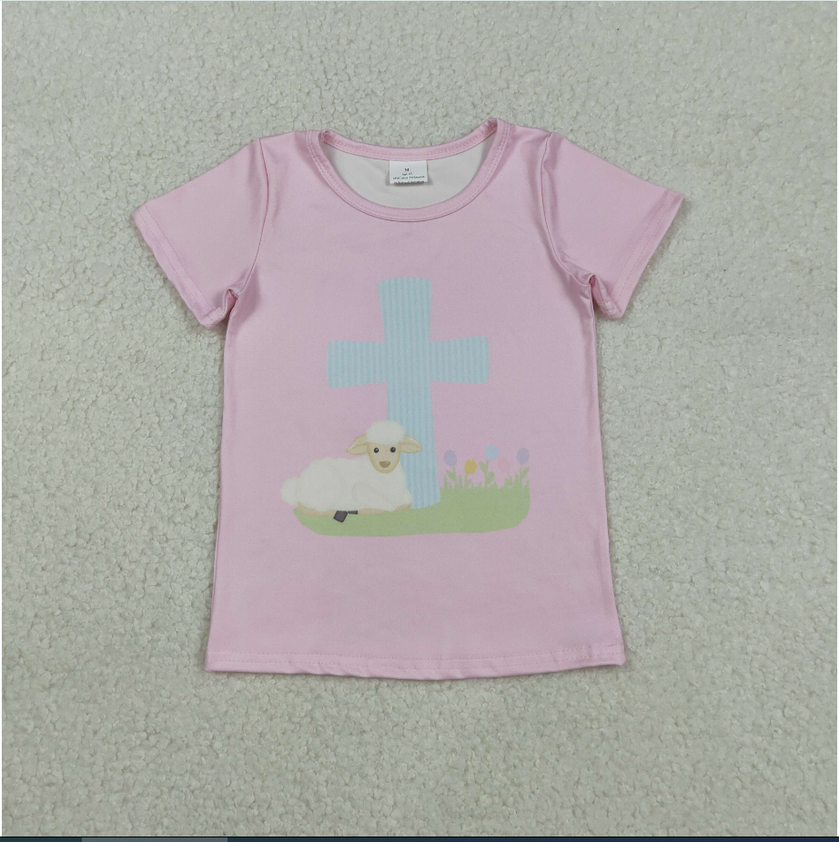 เสื้อยืดเด็กผู้หญิงลายกระต่ายน่ารัก 5 สี สำหรับเทศกาลอีสเตอร์ แขนสั้น