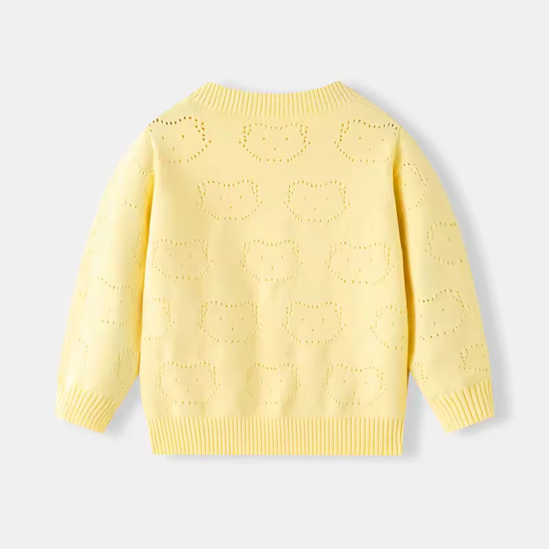 เสื้อคาร์ดิแกนถักนิตติ้งสำหรับเด็กผู้หญิงน่ารัก 0-3 ปี เสื้อกันหนาวเด็กผู้ชายสีพื้นแขนยาวลายการ์ตูนหมี เสื้อคลุมกันแดดเนื้อบาง