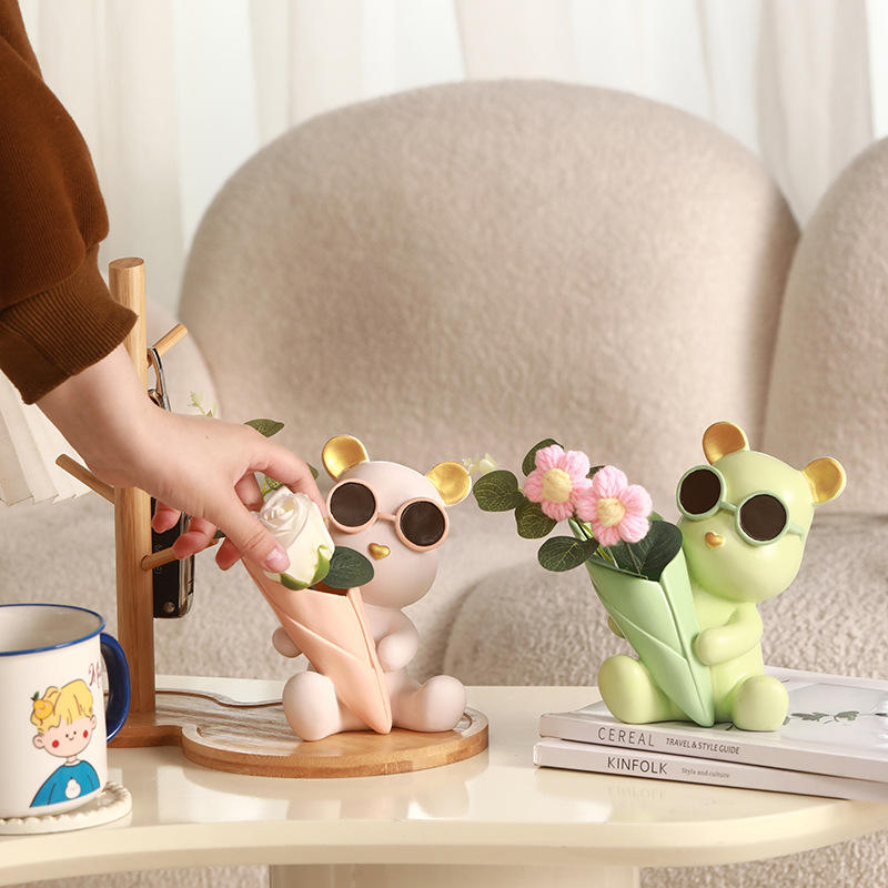 ตู้เก็บของรูปหมีน่ารัก ตกแต่งห้องนั่งเล่น ห้องเด็ก ตู้เสื้อผ้า ตู้เก็บของตั้งโต๊ะ ของตกแต่งการ์ตูนสร้างสรรค์ ทางเข้าบ้าน ทำจากเรซิ่นอีพ็อกซี่