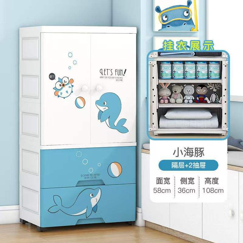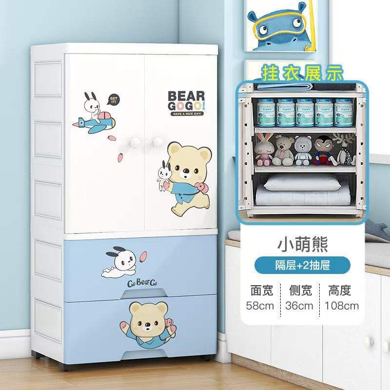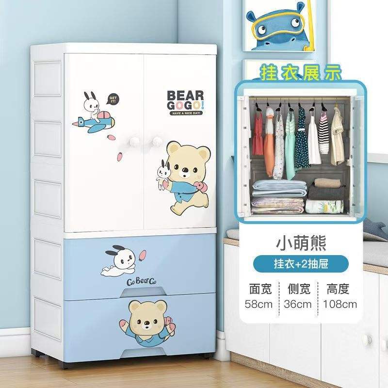 ตู้เสื้อผ้าเด็ก ตู้เก็บของพลาสติก ลายหมีน่ารัก พร้อมช่องแขวนและลิ้นชัก 2 ชั้น สำหรับจัดเก็บเสื้อผ้าเด็ก