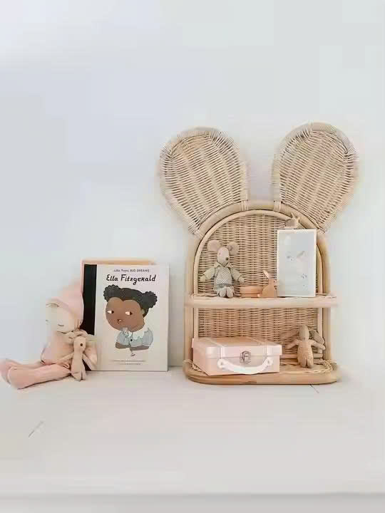 ชั้นวางของหวายติดผนังลายหมีน่ารักสำหรับตกแต่งห้องเด็กและสถานรับเลี้ยงเด็ก