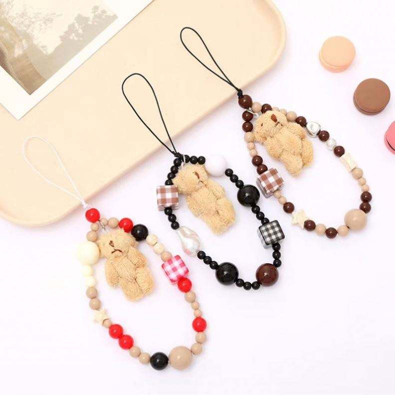 สายคล้องโทรศัพท์รูปหมีน่ารัก สายคล้องโทรศัพท์แบบลูกปัด พวงกุญแจ สายคล้องโทรศัพท์สำหรับโปรโมชั่น