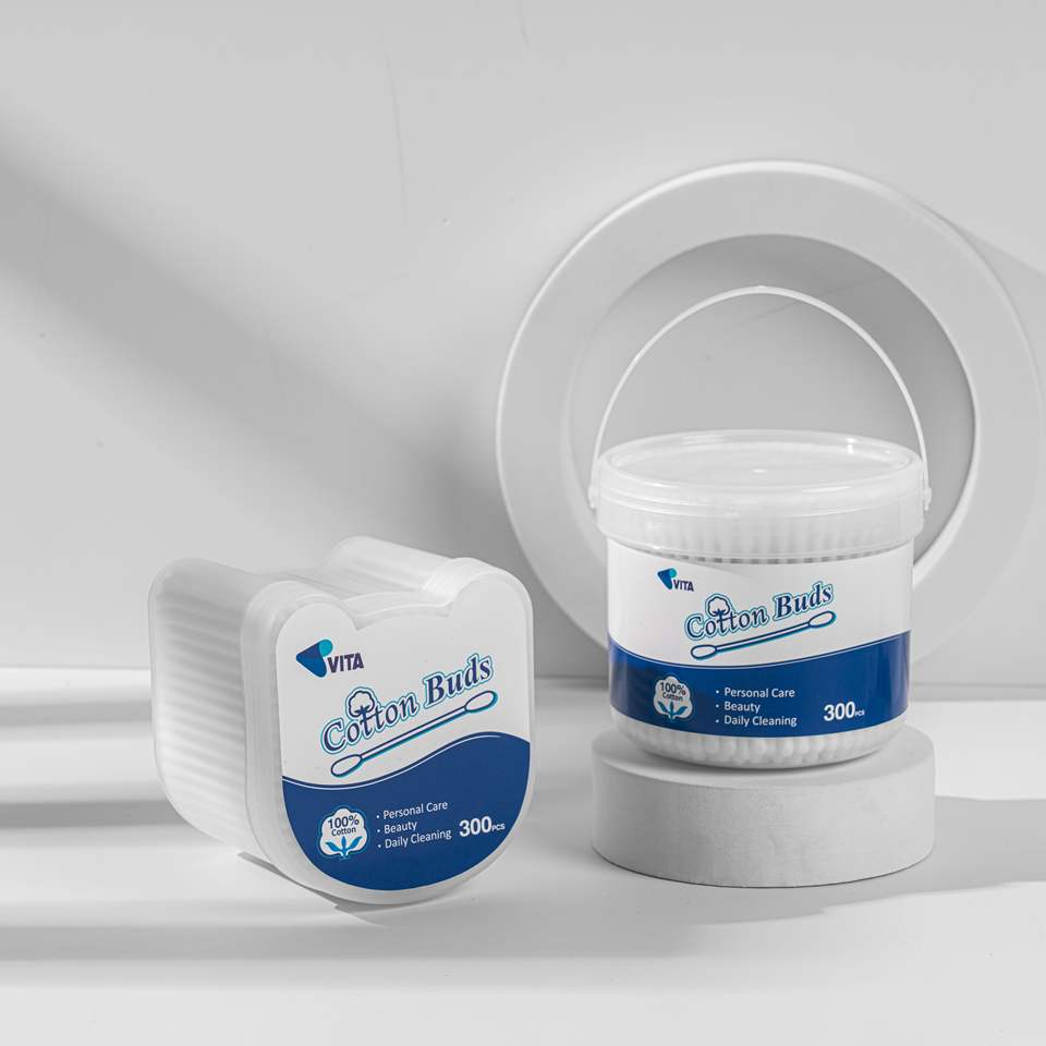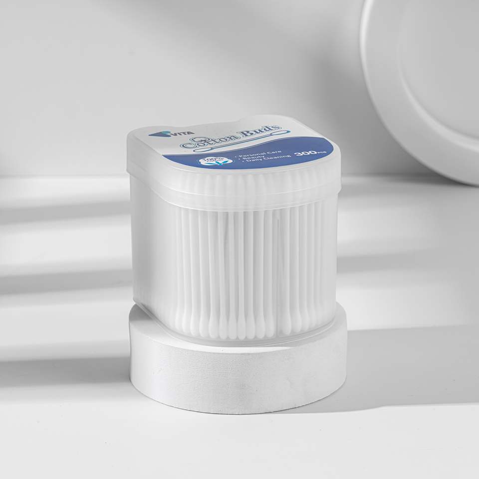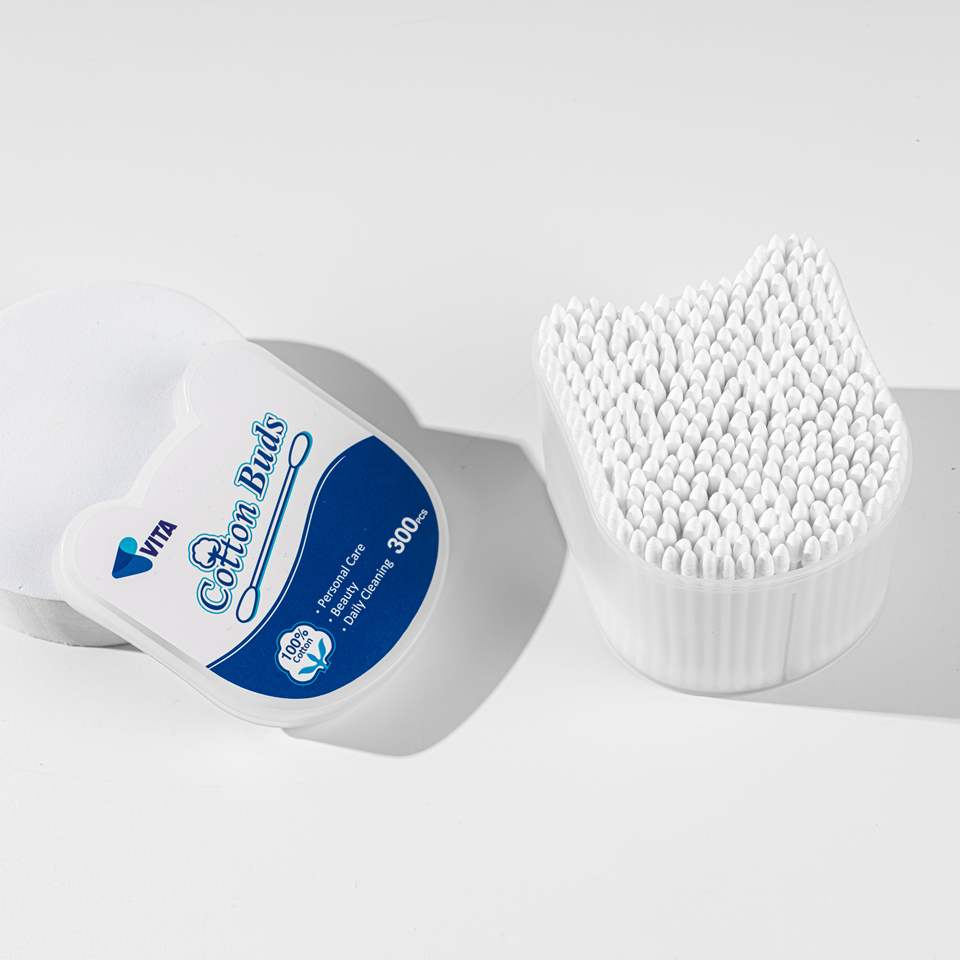 Buds-300pcs ผ้าฝ้ายแบบแท่งสำหรับกล่องกระดาษน่ารักปลายสำลีคุณภาพระดับพรีเมียม