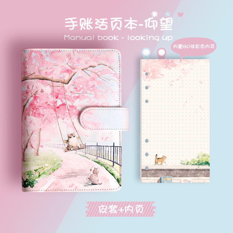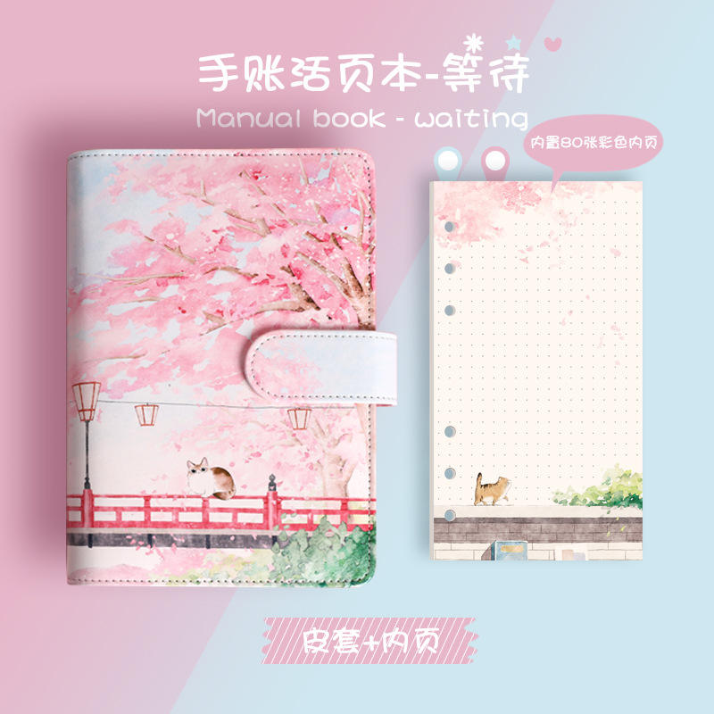สมุดปกหนังปกแข็งลายแมวน่ารักแบบเกาหลีชุดสมุด A6ลายดอกซากุระโรแมนติกน่ารักๆสำหรับเด็กผู้หญิง