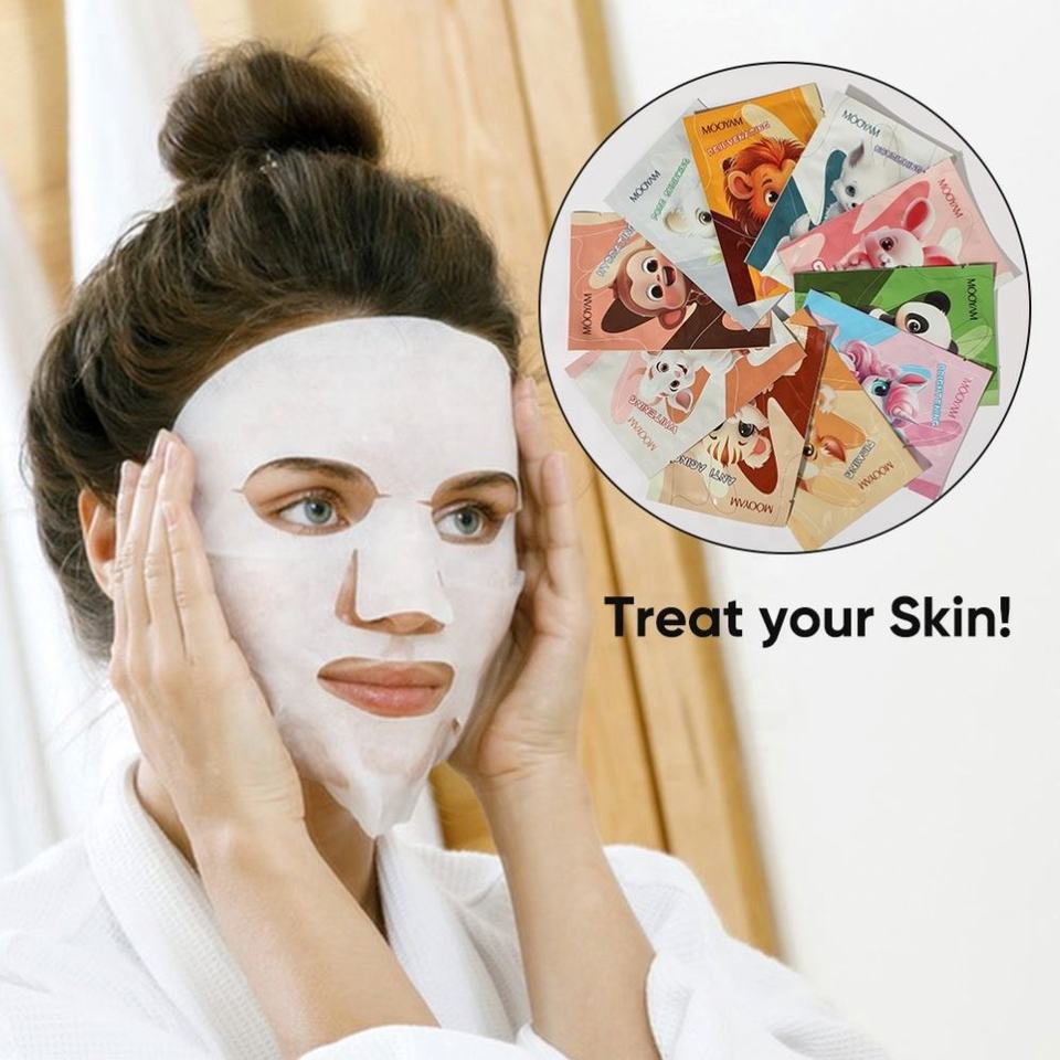แผ่นมาส์กหน้าลายสัตว์การ์ตูนน่ารักวิตามินซีไฮยาลูรอนิกแอซิดให้ความชุ่มชื้นมาส์กหน้าบำรุงผิว